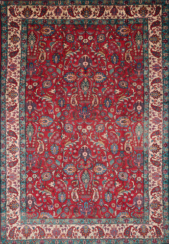 Tabriz-mattor är en välkänd typ av handknutna mattor som tillverkas i staden Tabriz, som ligger i nordvästra Iran, i Azarbajdzjan-provinsen i Persien. Dessa mattor har en lång tradition av hantverk och anses vara några av de finaste och mest eftertraktade persiska mattorna på marknaden. Typiskt gjorda av den finaste ull, ger Tabriz mattor en mjuk och hållbar yta. Ibland kan de också innehålla sidentrådar, särskilt i detaljerna i mönstret eller för att lägga till extra lyster till mattan. Tillverkningen av Tabriz-mattor innebär en noggrann handknutningsteknik som har gått i arv från generation till generation. Detta traditionella hantverk är avgörande för att skapa mattornas detaljerade mönster och höga kvalitet. Typiska mönster på Tabriz-mattor kan variera men inkluderar ofta medaljonger, blommor, arabesker och geometriska figurer. Mönstren är vanligtvis intrikata och symmetriska, vilket ger mattorna en estetiskt tilltalande karaktär. Färgpaletten i Tabriz-mattor är rik och kan innehålla traditionella färger som rött, blått, grönt, beige och andra jordnära toner. Kända för sin elegans, fina hantverk och klassiska orientaliska stil, gör Tabriz-mattornas mångsidighet dem lämpliga för både traditionella och moderna inredningsstilar. Dessa mattor är vanligtvis medelstora till stora och lämpar sig för olika applikationer, inklusive vardagsrum, sovrum och formella rum. Tabriz-mattor är mycket eftertraktade på den internationella mattmarknaden för sin höga kvalitet och autentiska hantverk. De anses vara värdefulla samlarföremål och investeringsmöjligheter på grund av deras skönhet och konstnärliga värde.