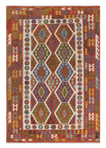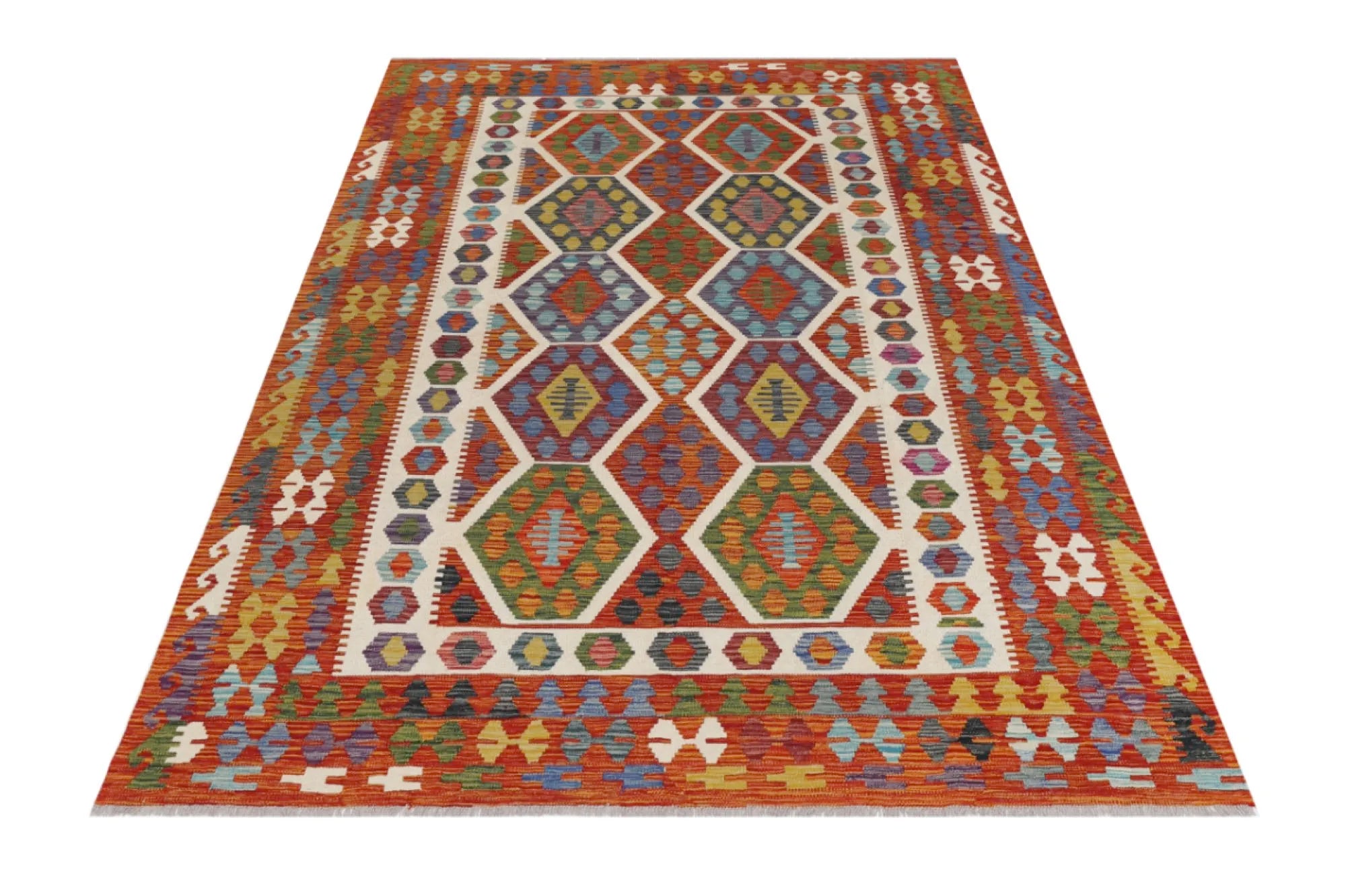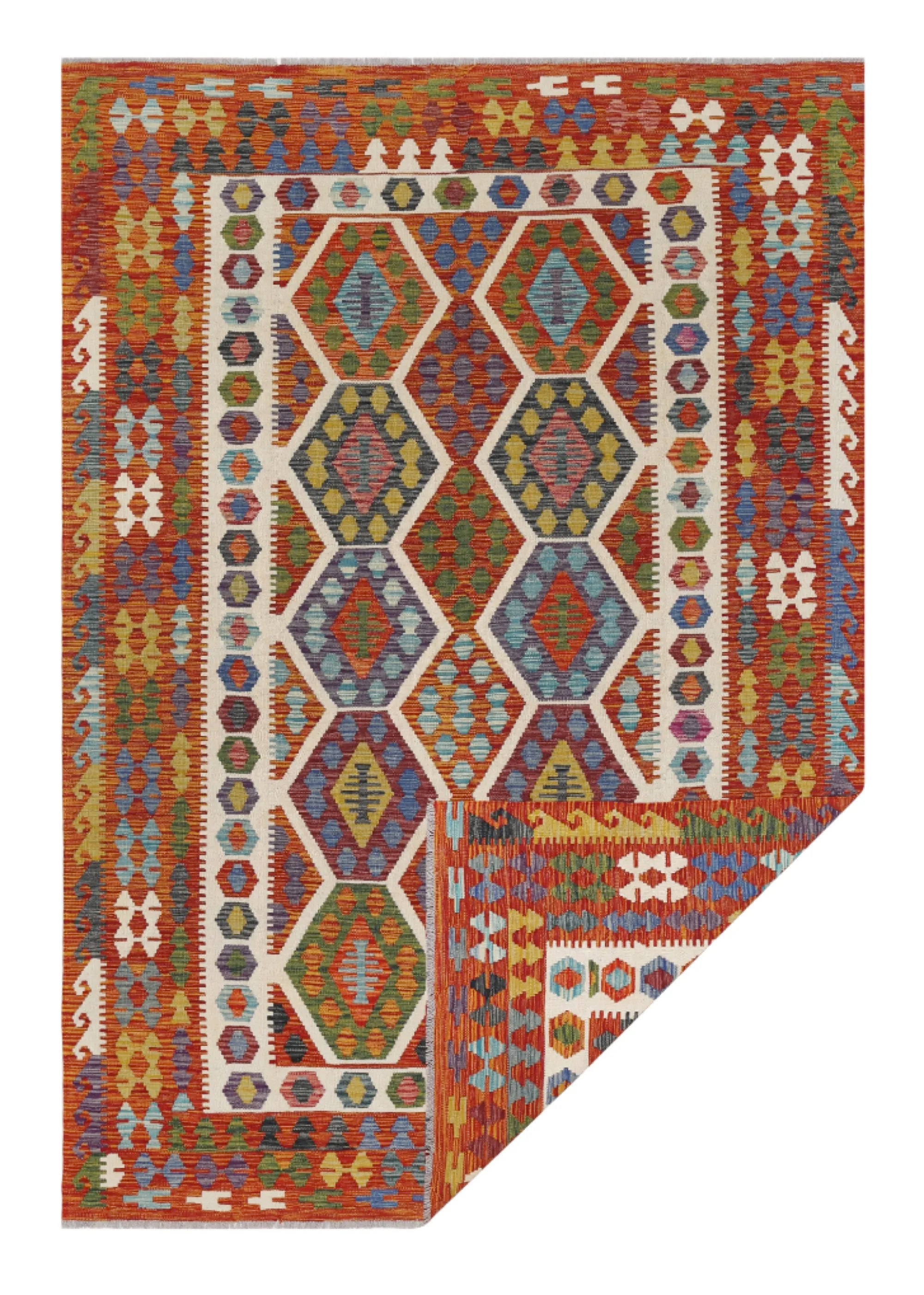 A Masterpiece of Afghan Craftsmanship with Caucasian Inspiration. Kelim Chobi rugs are a brilliant e x ample of traditional Afghan craftsmanship, combining both quality and aesthetic finesse. These rugs are uniquely handwoven in Afghanistan and carry a rich history of craftsmanship, where traditional techniques have been passed down through generations. What makes Kelim Chobi rugs particularly remarkable is their distinct design, heavily influenced by Caucasian patterns. The geometric shapes and symmetrical patterns, typical of Caucasian rugs, give Kelim Chobi rugs their unique and timeless character. The colors used in Kelim Chobi rugs are often subdued and natural, providing them with an elegant and sophisticated look. These colors are derived from natural dyes, which not only provide a durable and authentic color palette but also reflect a deep respect for nature and traditional methods. Each Kelim Chobi rug is handwoven with the utmost care and precision, ensuring high quality and durability. The rugs are flat-woven, giving them a smooth surface and making them both practical and easy to maintain. Thanks to their combination of Afghan craftsmanship and Caucasian design, Kelim Chobi rugs are a popular choice for those looking for a beautiful and timeless decorative element that can enhance any room. These rugs are not only practical floor coverings but also artworks that tell a story of tradition and culture. If you are looking for a rug that combines traditional craftsmanship with stylish design, Kelim Chobi rugs are an e x cellent choice. Their timeless beauty and durable quality make them a perfect investment for your home.
