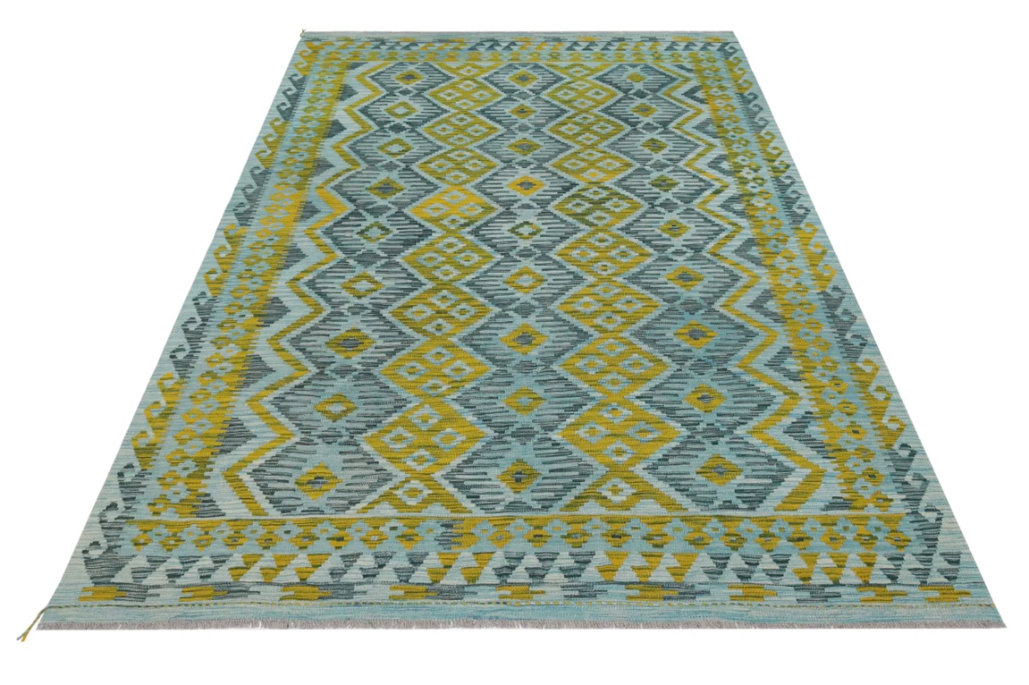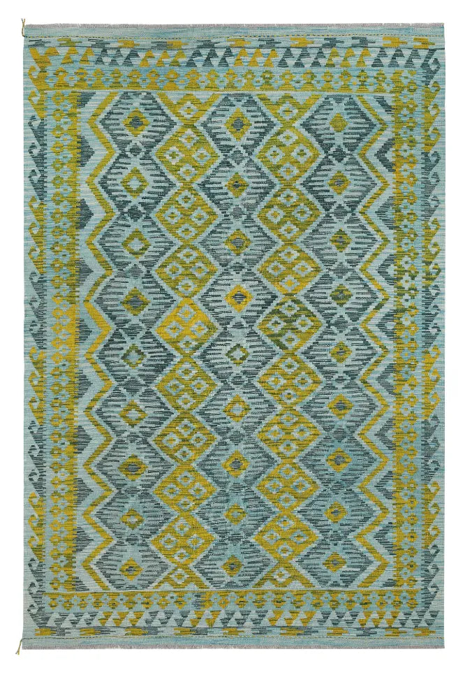 A Masterpiece of Afghan Craftsmanship with Caucasian Inspiration. Kelim Chobi rugs are a brilliant e x ample of traditional Afghan craftsmanship, combining both quality and aesthetic finesse. These rugs are uniquely handwoven in Afghanistan and carry a rich history of craftsmanship, where traditional techniques have been passed down through generations. What makes Kelim Chobi rugs particularly remarkable is their distinct design, heavily influenced by Caucasian patterns. The geometric shapes and symmetrical patterns, typical of Caucasian rugs, give Kelim Chobi rugs their unique and timeless character. The colors used in Kelim Chobi rugs are often subdued and natural, providing them with an elegant and sophisticated look. These colors are derived from natural dyes, which not only provide a durable and authentic color palette but also reflect a deep respect for nature and traditional methods. Each Kelim Chobi rug is handwoven with the utmost care and precision, ensuring high quality and durability. The rugs are flat-woven, giving them a smooth surface and making them both practical and easy to maintain. Thanks to their combination of Afghan craftsmanship and Caucasian design, Kelim Chobi rugs are a popular choice for those looking for a beautiful and timeless decorative element that can enhance any room. These rugs are not only practical floor coverings but also artworks that tell a story of tradition and culture. If you are looking for a rug that combines traditional craftsmanship with stylish design, Kelim Chobi rugs are an e x cellent choice. Their timeless beauty and durable quality make them a perfect investment for your home.
