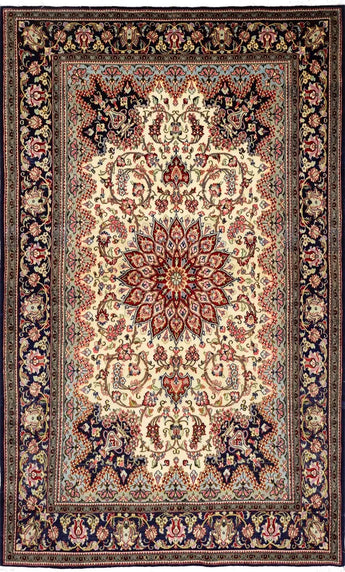 Ghom (ibland stavat Qom) är en stad i centrala Iran känd för att producera några av de finaste och mest exklusiva persiska mattorna. Här är en detaljerad översikt över Ghom-mattor: Ghom ligger cirka 150 km söder om Teheran och är en viktig religiös och kulturell stad i Persien. Staden har en lång tradition av mattvävning. Ghom-mattor är kända för sin exceptionella kvalitet och är oftast handknutna med mycket hög knuttäthet, vilket ger dem en mjuk och tät yta. Ghom-mattor är kända för sina komplexa och vackra mönster som ofta inkluderar blomsterarrangemang, medaljonger och ibland även figurativa motiv som djur och människor. De är ofta inspirerade av klassiska persiska mönster och har en symmetri som är både estetiskt tilltalande och harmonisk. Dessa mattor använder ett brett utbud av färger, inklusive livfulla röda, blåa, gröna och guldtoner. Färgningen görs traditionellt med naturliga färgämnen, vilket ger djup och lyster till mattorna. En av de mest utmärkande egenskaperna hos Ghom-mattor är att de ofta är gjorda av siden eller en blandning av siden och ull. Sidenmattor från Ghom är särskilt kända för sin mjuka, glansiga yta och sina detaljerade mönster. Det finns också mattor som helt är gjorda av finull eller en kombination av ull och bomull. Dessa mattor är också av mycket hög kvalitet och hållbara. Ghom-mattor finns i olika storlekar, från små bönemattor till större rumsmattor, och de kan vara rektangulära, kvadratiska eller runda. Tack vare sin höga kvalitet och hantverk har Ghom-mattor ett högt marknadsvärde. De är populära bland samlare och kan vara dyra, särskilt de som är gjorda av rent siden. Många betraktar Ghom-mattor som investeringsobjekt på grund av deras hållbarhet och estetiska värde.