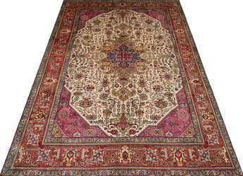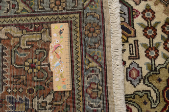 Tabriz-mattor är en välkänd typ av handknutna mattor som tillverkas i staden Tabriz, som ligger i nordvästra Iran, i Azarbajdzjan-provinsen i Persien. Dessa mattor har en lång tradition av hantverk och anses vara några av de finaste och mest eftertraktade persiska mattorna på marknaden. Typiskt gjorda av den finaste ull, ger Tabriz mattor en mjuk och hållbar yta. Ibland kan de också innehålla sidentrådar, särskilt i detaljerna i mönstret eller för att lägga till extra lyster till mattan. Tillverkningen av Tabriz-mattor innebär en noggrann handknutningsteknik som har gått i arv från generation till generation. Detta traditionella hantverk är avgörande för att skapa mattornas detaljerade mönster och höga kvalitet. Typiska mönster på Tabriz-mattor kan variera men inkluderar ofta medaljonger, blommor, arabesker och geometriska figurer. Mönstren är vanligtvis intrikata och symmetriska, vilket ger mattorna en estetiskt tilltalande karaktär. Färgpaletten i Tabriz-mattor är rik och kan innehålla traditionella färger som rött, blått, grönt, beige och andra jordnära toner. Kända för sin elegans, fina hantverk och klassiska orientaliska stil, gör Tabriz-mattornas mångsidighet dem lämpliga för både traditionella och moderna inredningsstilar. Dessa mattor är vanligtvis medelstora till stora och lämpar sig för olika applikationer, inklusive vardagsrum, sovrum och formella rum. Tabriz-mattor är mycket eftertraktade på den internationella mattmarknaden för sin höga kvalitet och autentiska hantverk. De anses vara värdefulla samlarföremål och investeringsmöjligheter på grund av deras skönhet och konstnärliga värde.