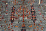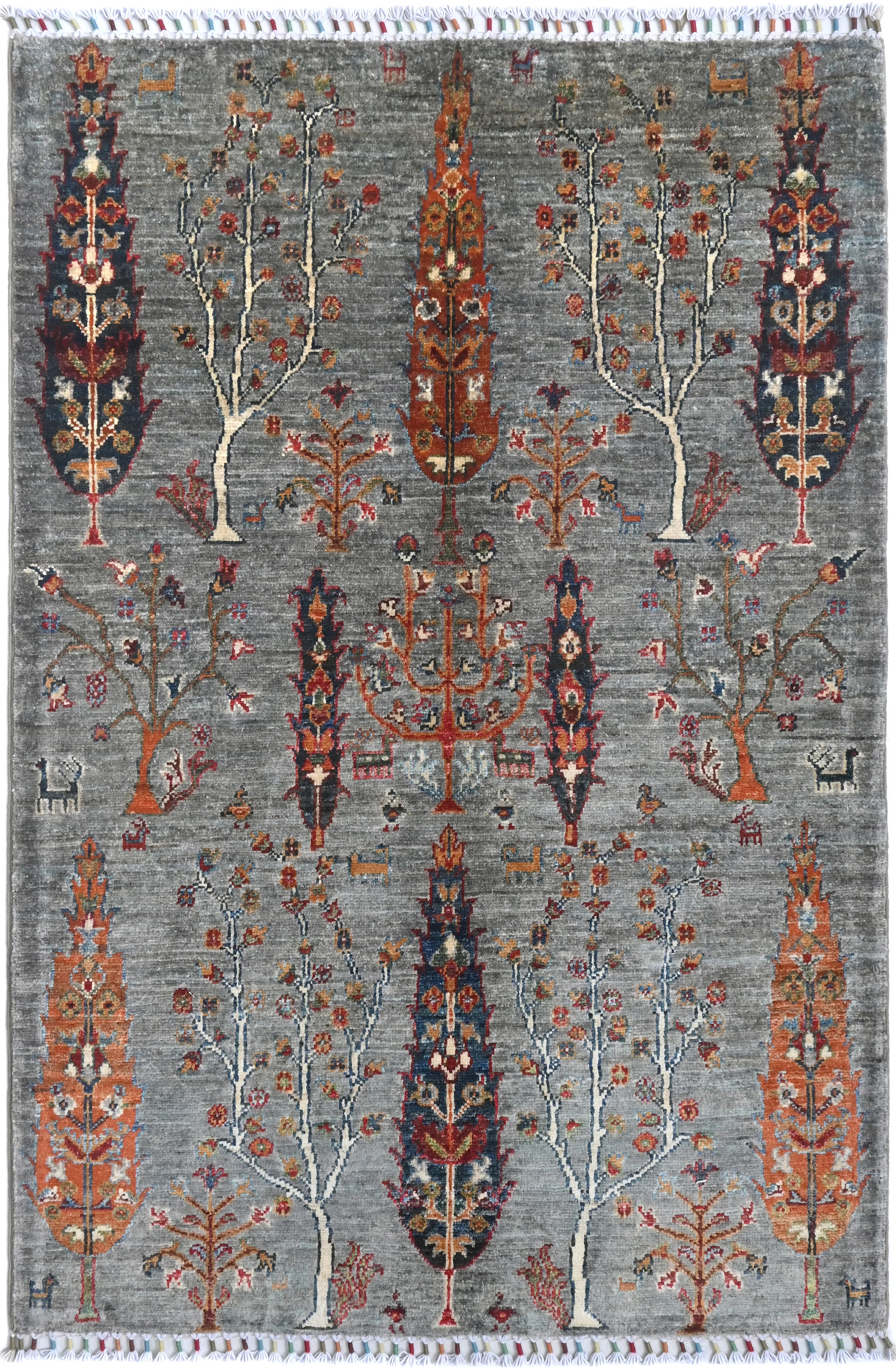 Gran is an exclusive, hand-knotted Khorjin-style rug from Afghanistan, featuring a design inspired by the organic patterns of pine wood grains. The bright, cheerful colors combined with the artistic composition make this rug ideal for anyone looking for a vibrant, modern and expressive interior piece. Made from 100% hand-spun wool and dyed entirely with natural vegetable dyes, this rug offers a warm, authentic look with a beautiful natural sheen. Every knot is tied by hand by skilled Afghan artisans, ensuring a dense, durable and long-lasting rug of superior quality. The Gran rug fits perfectly in modern and classic interiors alike and serves beautifully as a statement piece in living rooms, bedrooms or workspaces. A stunning blend of traditional craftsmanship and contemporary design — for those who want a rug that truly stands out.