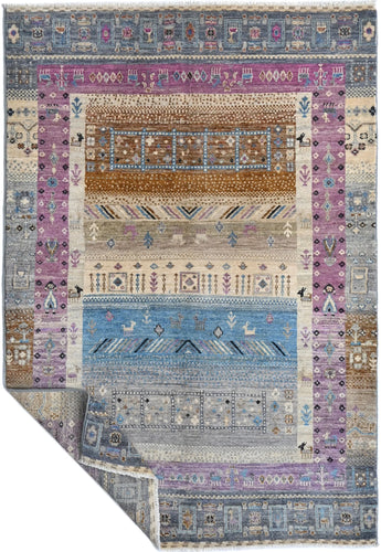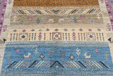 Khorjin rugs from Afghanistan are a type of traditional te x tile often used as bags or saddlebags by nomadic tribes in the region. These rugs are known for their practical uses and beautiful patterns. Originally created to be used as pack bags by nomadic people, Khorjin rugs are often designed with functionality in mind. The patterns on Khorjin rugs are often geometric and colorful, with symbolic motifs representing the tribe's culture and traditions. Common motifs include diamonds, rhombuses, and other geometric shapes, often in a rich color palette. Khorjin rugs are typically woven from wool, which makes them durable and tough enough for nomadic life. The colors in Khorjin rugs are usually natural, produced from plant dyes, giving them a warm and earthy color palette. Typical colors include red, blue, brown, and beige, but there may also be touches of green and yellow. Khorjin rugs are not just practical, but they are also artworks that tell stories about the tribe's life and culture. Each rug is unique and reflects the weaver's skill and creativity. High-quality materials and craftsmanship make Khorjin rugs long-lasting and valuable investments for customers.