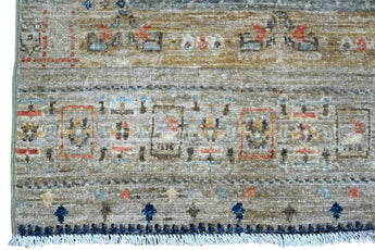 Khorjin rugs from Afghanistan are a type of traditional te x tile often used as bags or saddlebags by nomadic tribes in the region. These rugs are known for their practical uses and beautiful patterns. Originally created to be used as pack bags by nomadic people, Khorjin rugs are often designed with functionality in mind. The patterns on Khorjin rugs are often geometric and colorful, with symbolic motifs representing the tribe's culture and traditions. Common motifs include diamonds, rhombuses, and other geometric shapes, often in a rich color palette. Khorjin rugs are typically woven from wool, which makes them durable and tough enough for nomadic life. The colors in Khorjin rugs are usually natural, produced from plant dyes, giving them a warm and earthy color palette. Typical colors include red, blue, brown, and beige, but there may also be touches of green and yellow. Khorjin rugs are not just practical, but they are also artworks that tell stories about the tribe's life and culture. Each rug is unique and reflects the weaver's skill and creativity. High-quality materials and craftsmanship make Khorjin rugs long-lasting and valuable investments for customers.