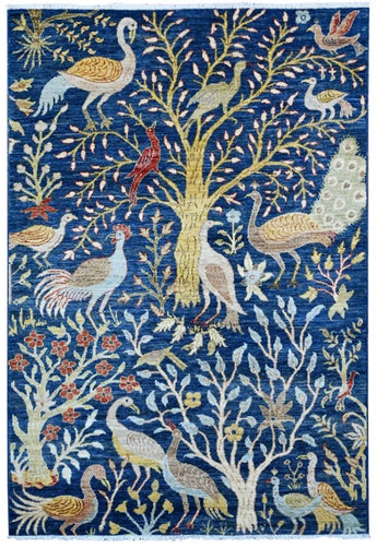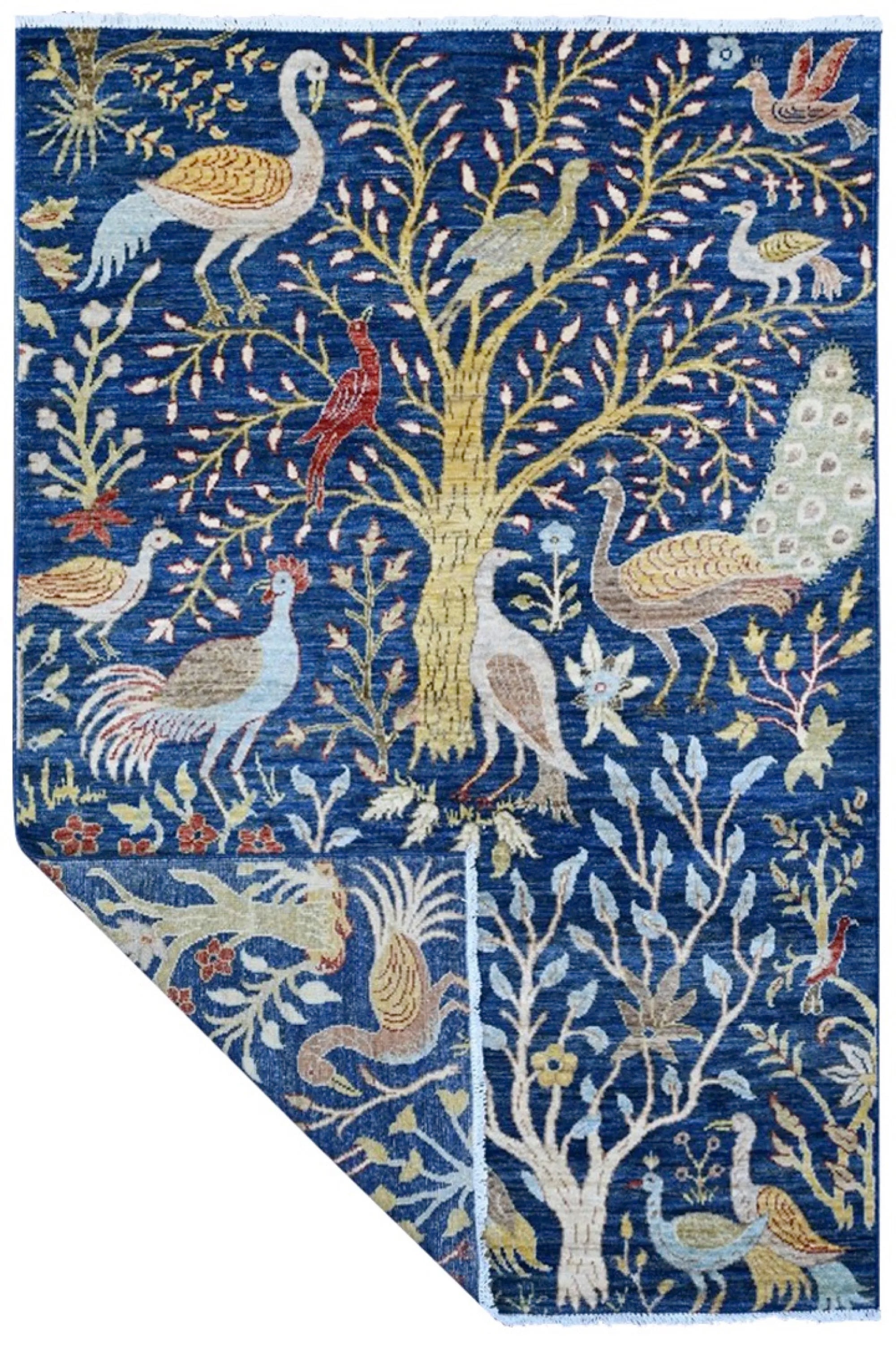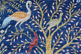 Nirvana is an extraordinary hand-knotted rug that blends traditional oriental weaving heritage with the poetic beauty of nature. Inspired by the classical Khorjin style, this masterpiece introduces a fresh interpretation where birds, foliage, and natural motifs create a harmonious, lively pattern across the entire rug. Every detail is crafted with artistic precision, giving the piece depth, rhythm, and movement. Woven from 100% hand-spun wool and dyed exclusively with natural vegetable dyes, Nirvana offers a rich, vibrant color palette that feels both joyful and timeless. The natural sheen of the wool enhances the colors beautifully under different lighting conditions, turning the rug into a true statement piece. This rug is not just décor -it is a textile artwork that brings warmth, character, and a sense of balance into any home. For those seeking a unique, soulful, and expressive rug with deep craftsmanship and artistic flair, Nirvana is the perfect choice.