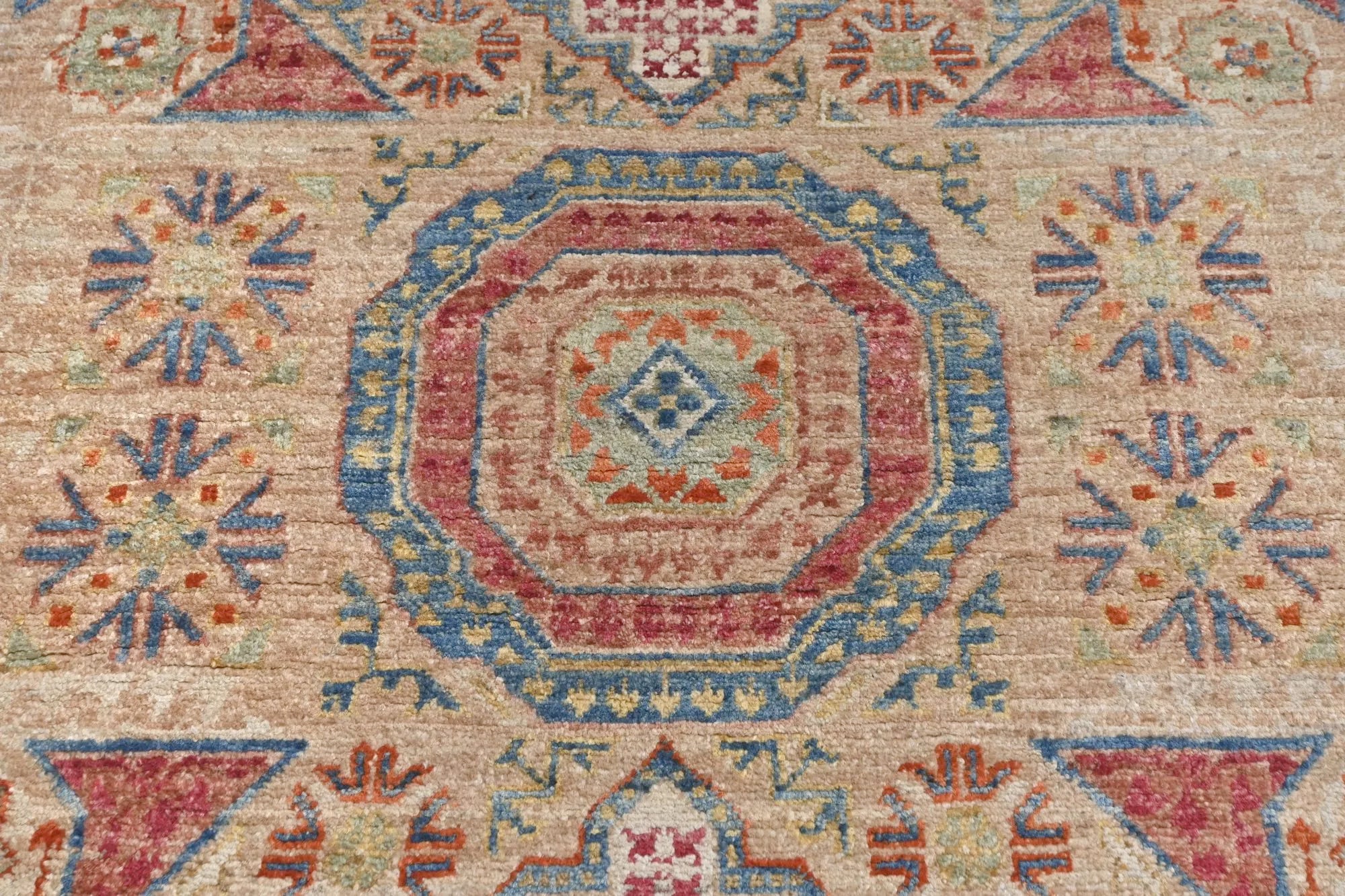 Let yourself be inspired by this rug, which is not only a decoration for your home but also a celebration of tradition and skilled artistry. Discover the timeless elegance of our Mamlok rug, a masterpiece that blends traditional craftsmanship with a modern touch. Hand-knotted with e x ceptional care in Afghanistan and Pakistan, it represents the pinnacle of quality in genuine rugs. Intricate designs: Each Mamlok rug is adorned with detailed, vibrant patterns that captivate the eye and create a unique ambiance. Bright colors: Natural plant-based dyes give the rug a radiant and enduring sheen. Dense knots: Double knots ensure outstanding durability and a lu x urious feel. Premium materials: Crafted from the finest high-quality wool, offering a soft yet durable finish. Fits any style: Whether your home has a modern or classic interior, the Mamlok rug is the perfect accent to elevate the room.