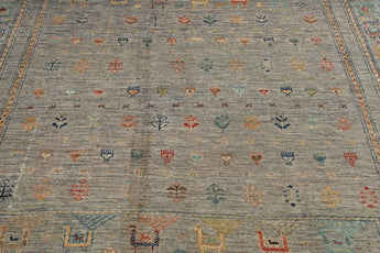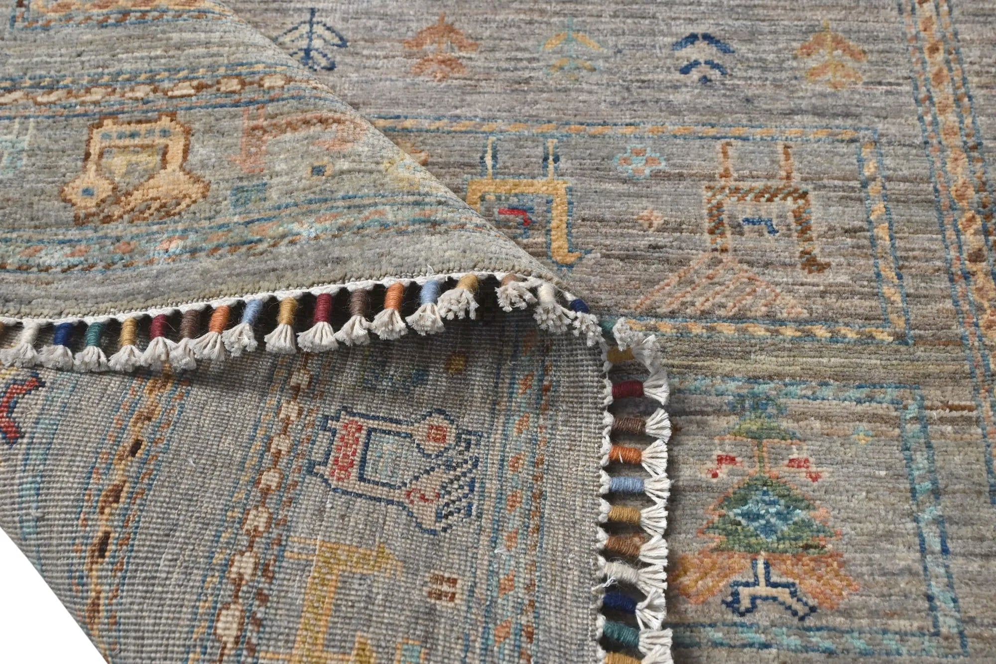Khorjin rugs from Afghanistan are a type of traditional te x tile often used as bags or saddlebags by nomadic tribes in the region. These rugs are known for their practical uses and beautiful patterns. Originally created to be used as pack bags by nomadic people, Khorjin rugs are often designed with functionality in mind. The patterns on Khorjin rugs are often geometric and colorful, with symbolic motifs representing the tribe's culture and traditions. Common motifs include diamonds, rhombuses, and other geometric shapes, often in a rich color palette. Khorjin rugs are typically woven from wool, which makes them durable and tough enough for nomadic life. The colors in Khorjin rugs are usually natural, produced from plant dyes, giving them a warm and earthy color palette. Typical colors include red, blue, brown, and beige, but there may also be touches of green and yellow. Khorjin rugs are not just practical, but they are also artworks that tell stories about the tribe's life and culture. Each rug is unique and reflects the weaver's skill and creativity. High-quality materials and craftsmanship make Khorjin rugs long-lasting and valuable investments for customers.