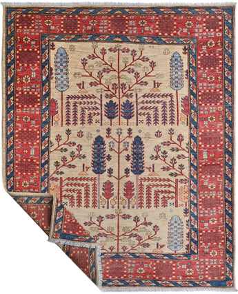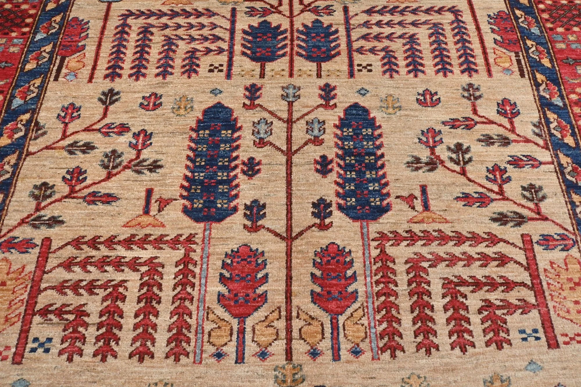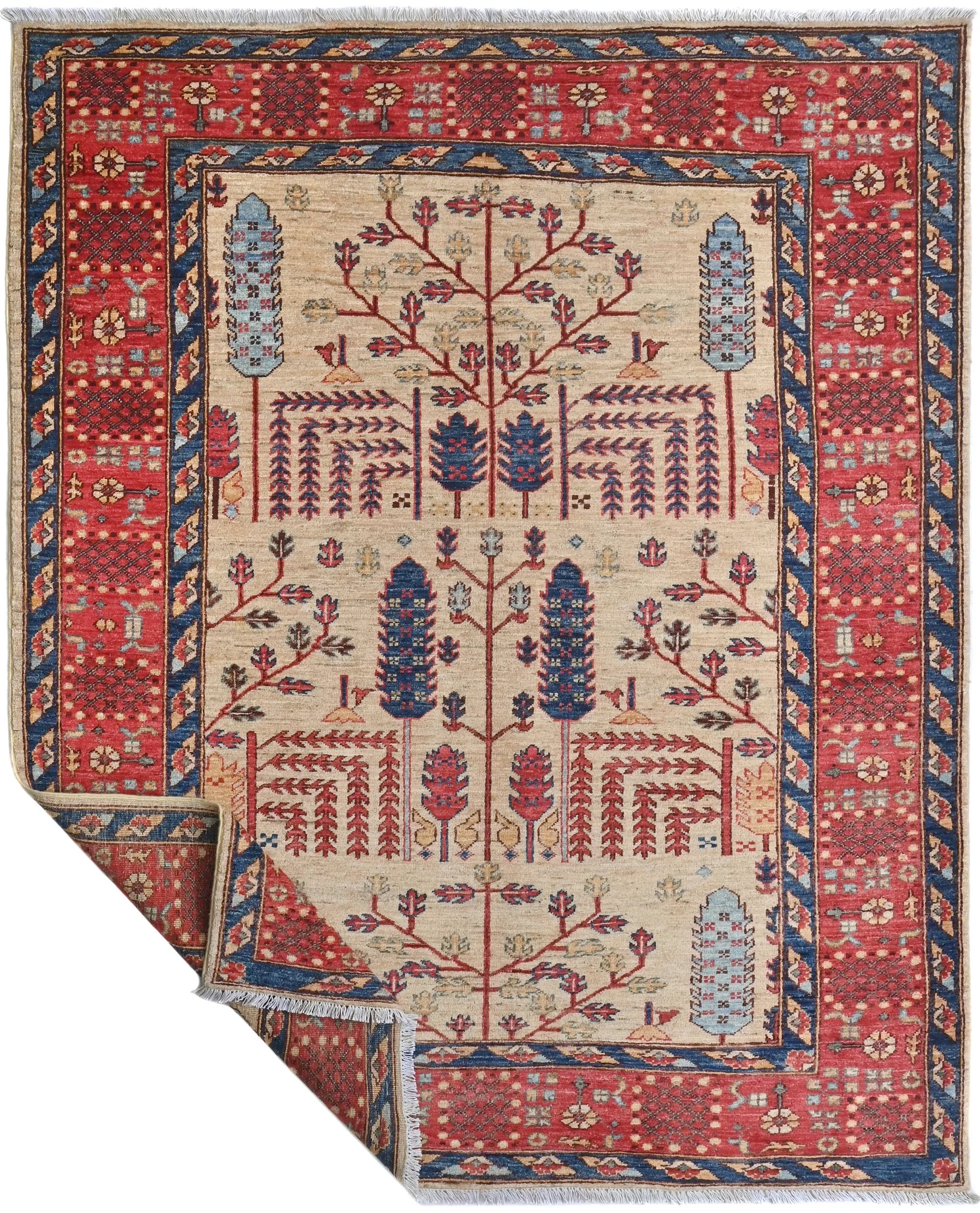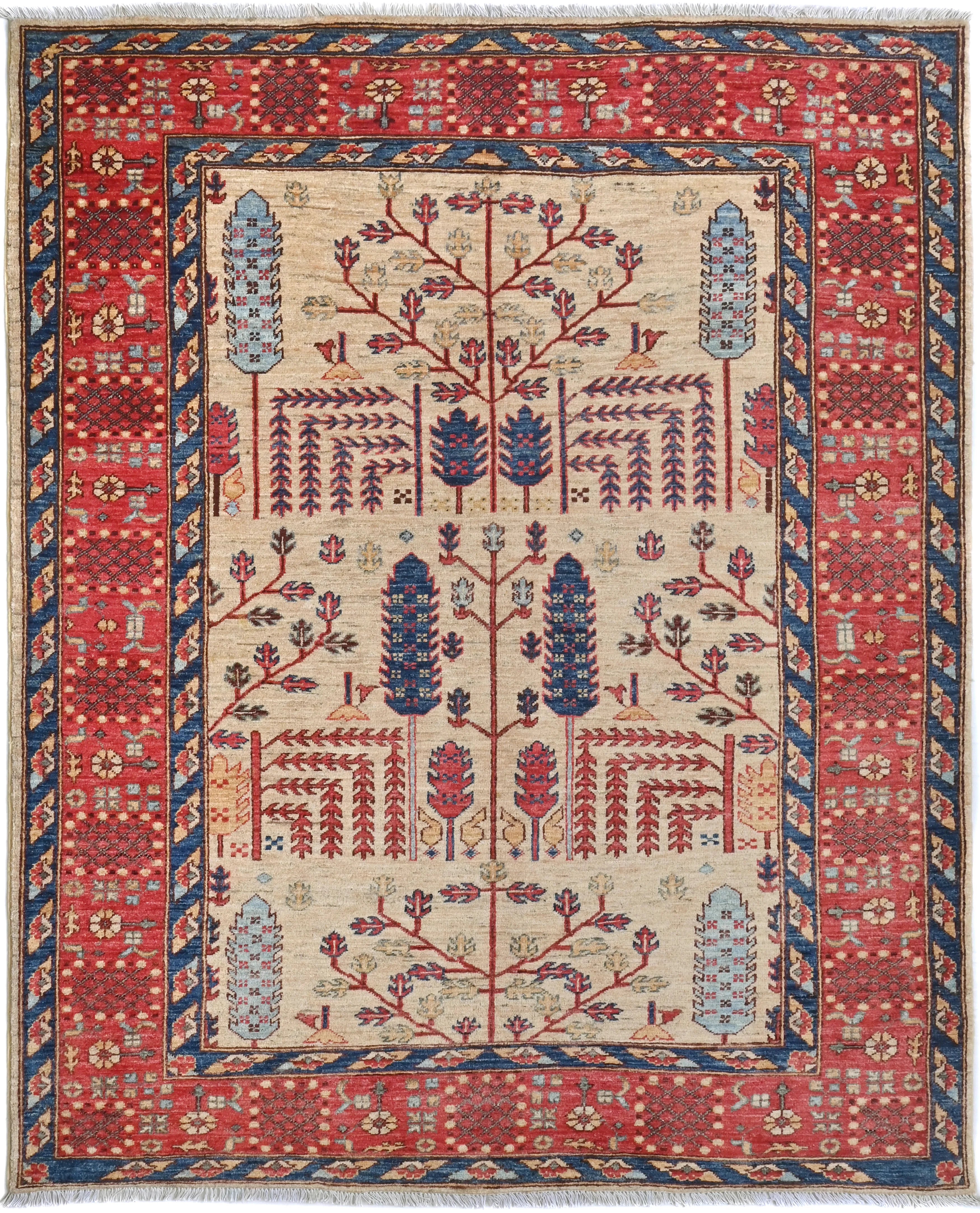 Gran is an exclusive, hand-knotted Khorjin-style rug from Afghanistan, featuring a design inspired by the organic patterns of pine wood grains. The bright, cheerful colors combined with the artistic composition make this rug ideal for anyone looking for a vibrant, modern and expressive interior piece. Made from 100% hand-spun wool and dyed entirely with natural vegetable dyes, this rug offers a warm, authentic look with a beautiful natural sheen. Every knot is tied by hand by skilled Afghan artisans, ensuring a dense, durable and long-lasting rug of superior quality. The Gran rug fits perfectly in modern and classic interiors alike and serves beautifully as a statement piece in living rooms, bedrooms or workspaces. A stunning blend of traditional craftsmanship and contemporary design — for those who want a rug that truly stands out.