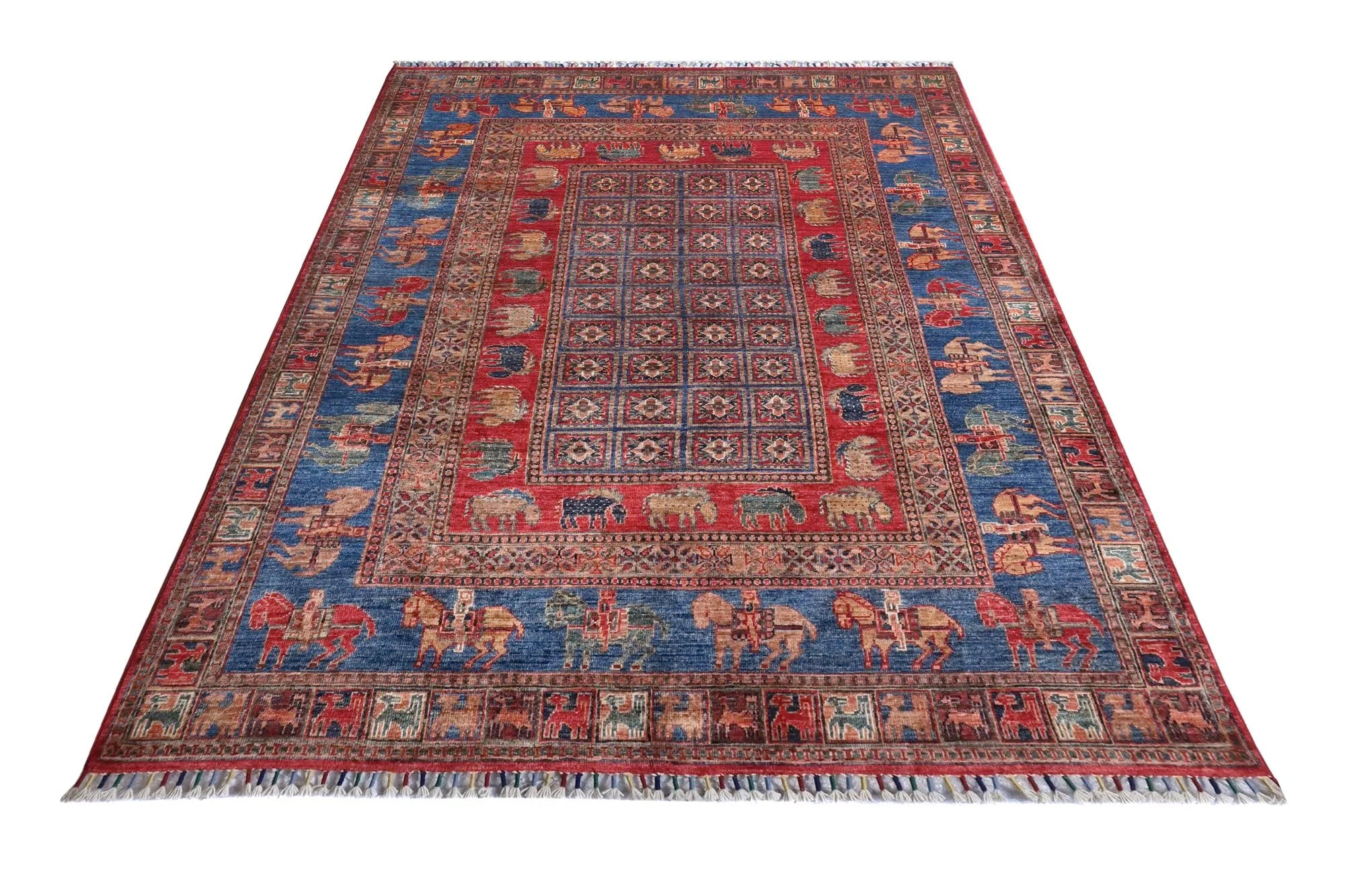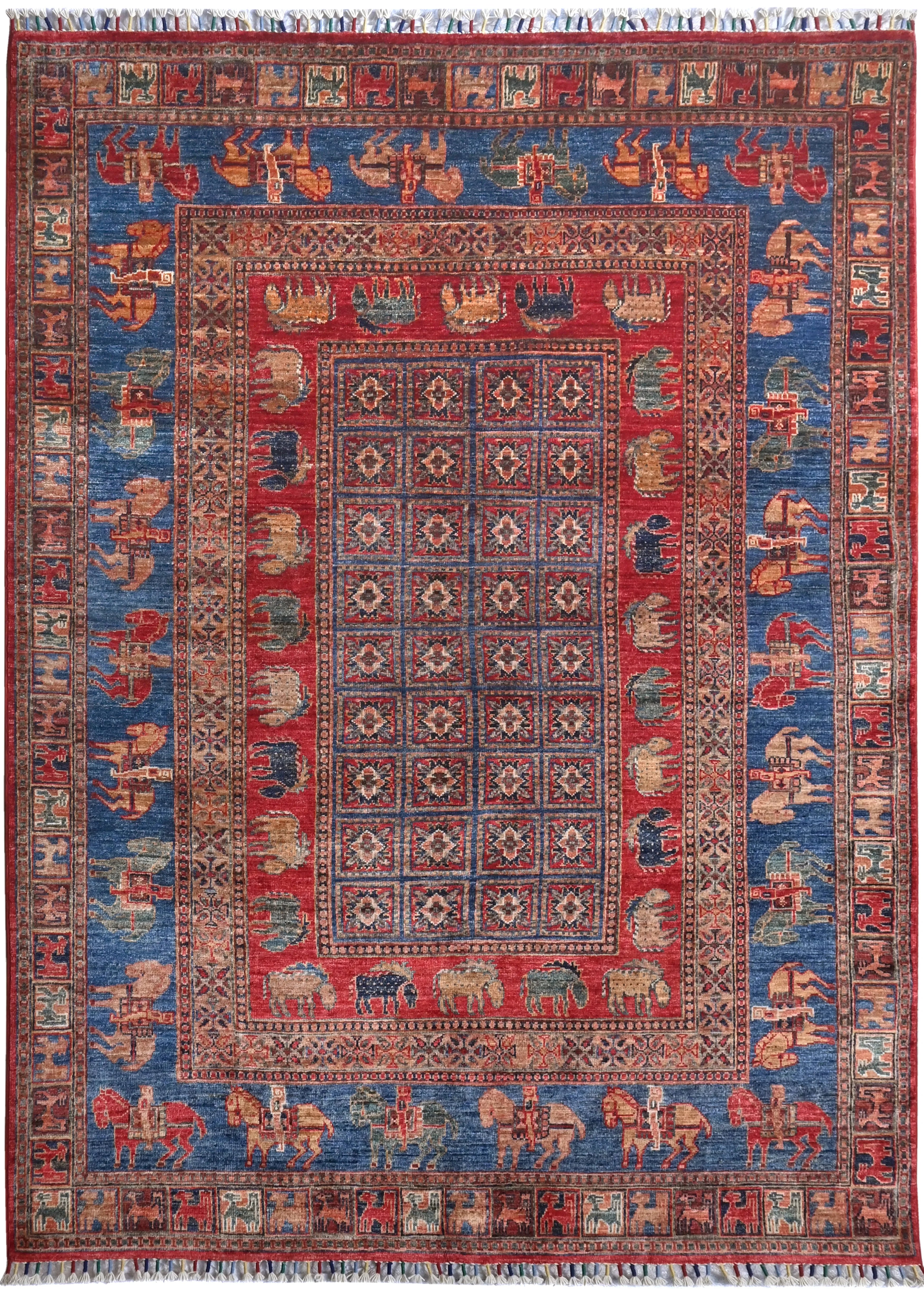 This rug is newly produced but features one of the most iconic and historically admired patterns: the Pazarok design, inspired by the famous antique rug displayed in the museum of Saint Petersburg. Recreated with modern precision and crafted in premium Khorjin quality, this rug offers a dense, durable, and luxuriously soft texture that honors its traditional roots while meeting contemporary standards. Every detail- the geometric motifs, folkloric shapes, and classic pattern structure- has been carefully reinterpreted to bring out both authenticity and modern artistic expression. Handwoven from hand-spun wool and dyed with natural vegetable dyes, the rug displays a beautifully organic sheen and a rich handmade character. This piece is perfect for anyone who appreciates historic design but wants the practicality, freshness, and longevity of a newly hand-knotted rug. A piece of cultural heritage — brought to life for today’s interiors.