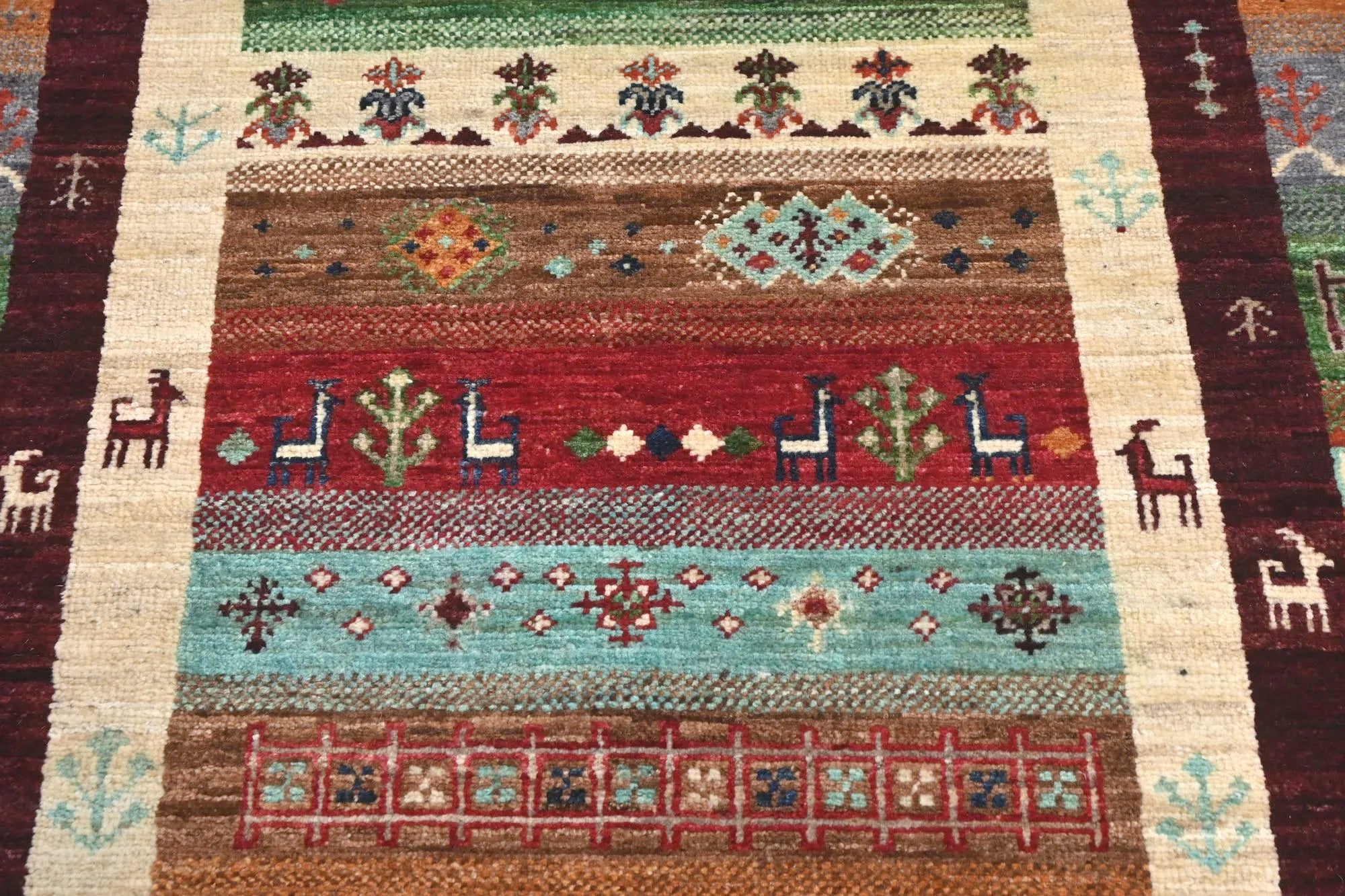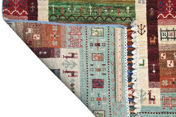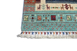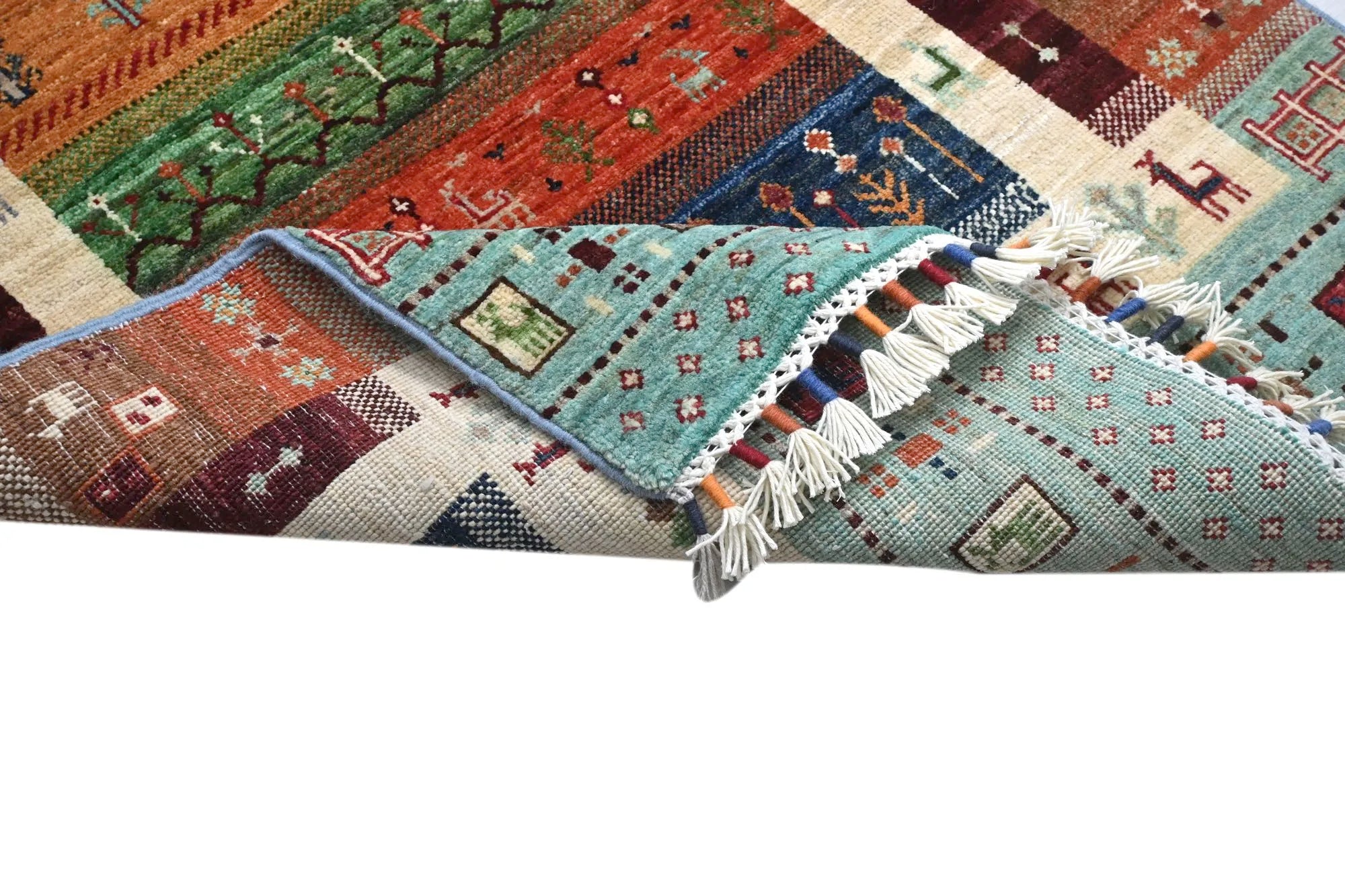 Khorjin rugs from Afghanistan are a type of traditional te x tile often used as bags or saddlebags by nomadic tribes in the region. These rugs are known for their practical uses and beautiful patterns. Originally created to be used as pack bags by nomadic people, Khorjin rugs are often designed with functionality in mind. The patterns on Khorjin rugs are often geometric and colorful, with symbolic motifs representing the tribe's culture and traditions. Common motifs include diamonds, rhombuses, and other geometric shapes, often in a rich color palette. Khorjin rugs are typically woven from wool, which makes them durable and tough enough for nomadic life. The colors in Khorjin rugs are usually natural, produced from plant dyes, giving them a warm and earthy color palette. Typical colors include red, blue, brown, and beige, but there may also be touches of green and yellow. Khorjin rugs are not just practical, but they are also artworks that tell stories about the tribe's life and culture. Each rug is unique and reflects the weaver's skill and creativity. High-quality materials and craftsmanship make Khorjin rugs long-lasting and valuable investments for customers.