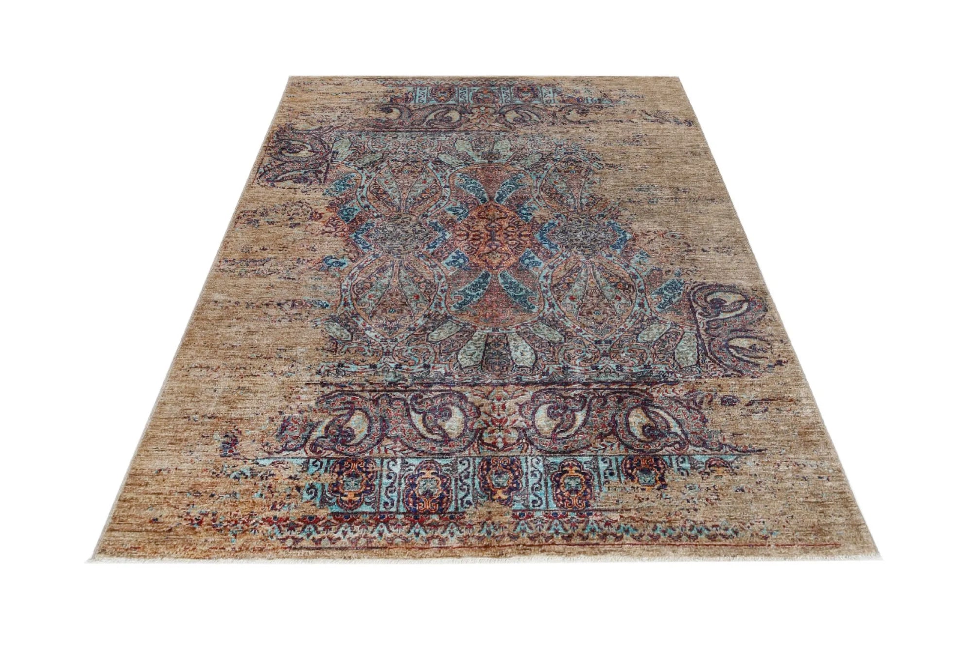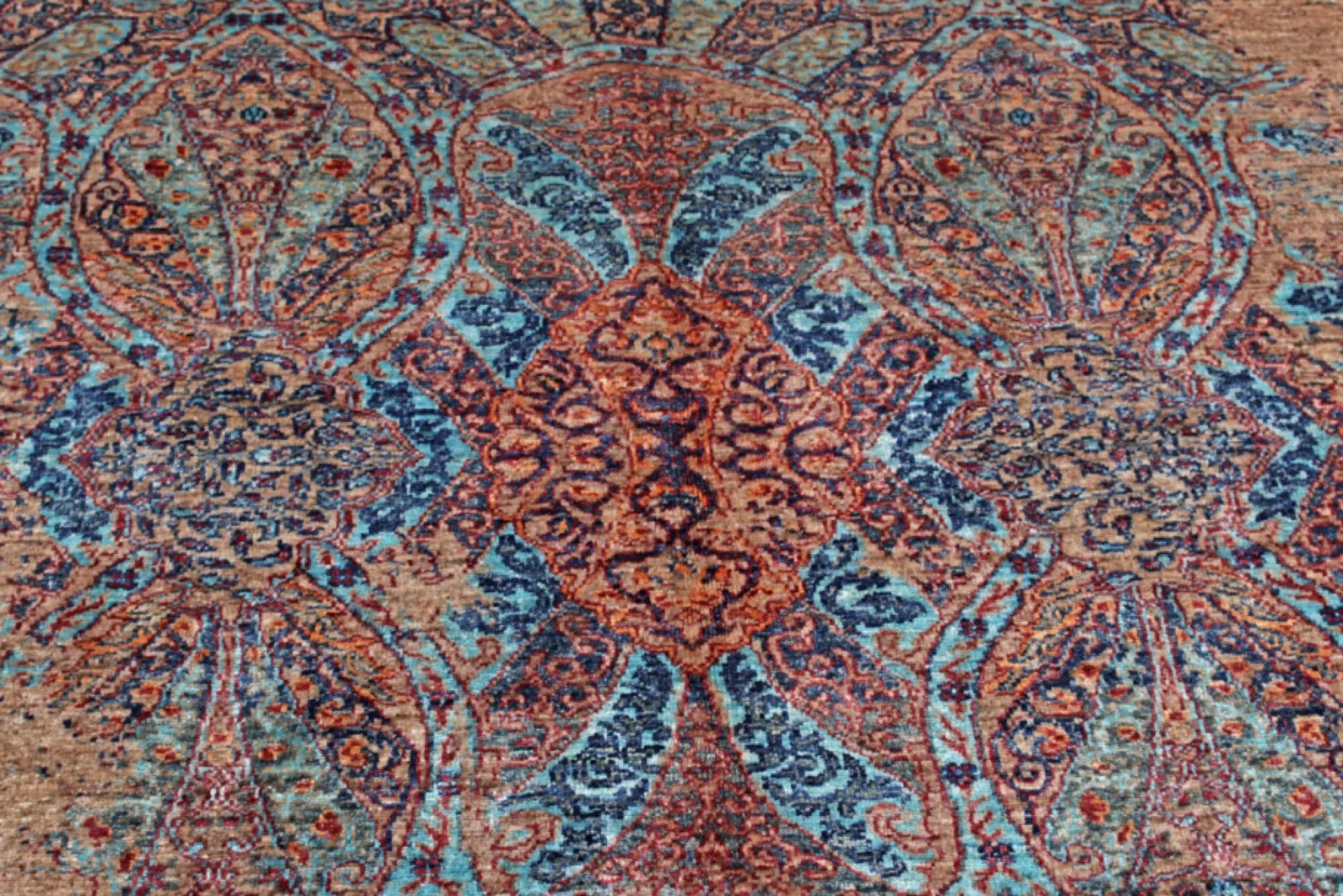 Khorjin Contrast is an exclusive, densely hand-knotted rug that blends traditional craftsmanship with contemporary design. Inspired by classical Mamluk rugs, this piece features a striking mix of deep blue, red, turquoise, green, and beige tones. Its bold and artistic color composition makes it the perfect choice for anyone looking for a unique designer rug that truly stands out. With its high knot density, natural sheen, and exquisite detailing, this rug is a genuine quality masterpiece. Every knot is tied by hand, ensuring durability and long-lasting beauty. This rug fits seamlessly into both modern and traditional interiors and works perfectly as a statement piece in living rooms, dining areas, or professional spaces. If you are searching for a real oriental rug, a distinctive design rug, or a premium hand-knotted Khorjin rug, Khorjin Contrast is an exceptional option. A rug that transforms the atmosphere of any room — visually and stylistically.