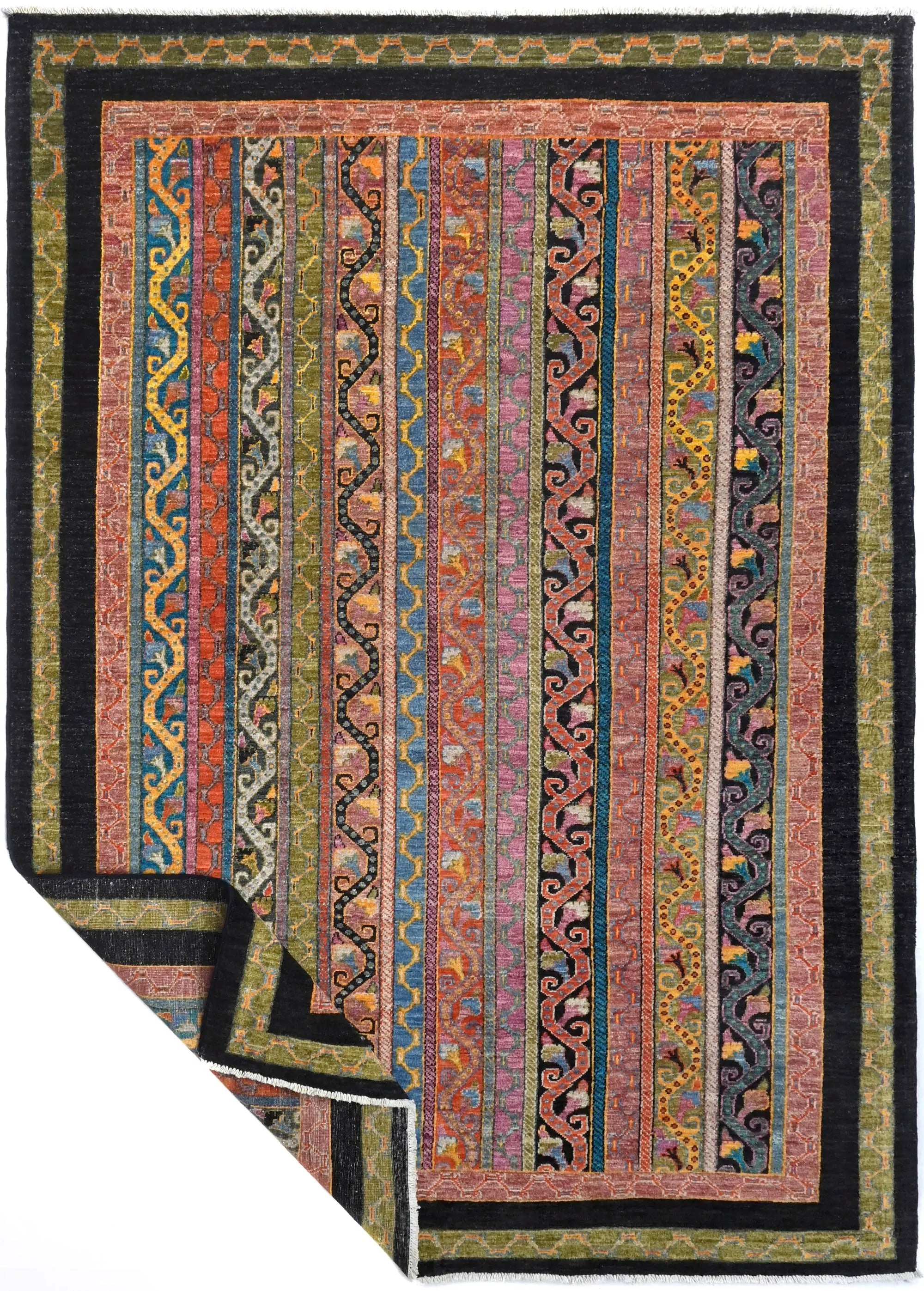 Shal rugs from Afghanistan are a type of traditional te x tile often used as bags or saddlebags by nomadic tribes in the region. These rugs are known for their practical uses and beautiful designs. Originally created for use as pack bags by nomadic people, Shal rugs are often designed with functionality in mind. The patterns on Shal rugs are often colorful, with symbolic motifs representing the tribe's culture and traditions. Typically knotted from wool, Shal rugs are durable and sturdy for nomadic life. The colors in Shal rugs are usually natural, made from plant dyes, giving them a warm and earthy color palette. Typical colors include red, blue, brown, and beige, but there may also be hints of green and yellow. Shal rugs are not only practical but also works of art that tell stories about the tribe's life and culture. Each rug is unique and reflects the weaver's skill and creativity. High-quality materials and craftsmanship make Shal rugs long-lasting and valuable investments for customers.