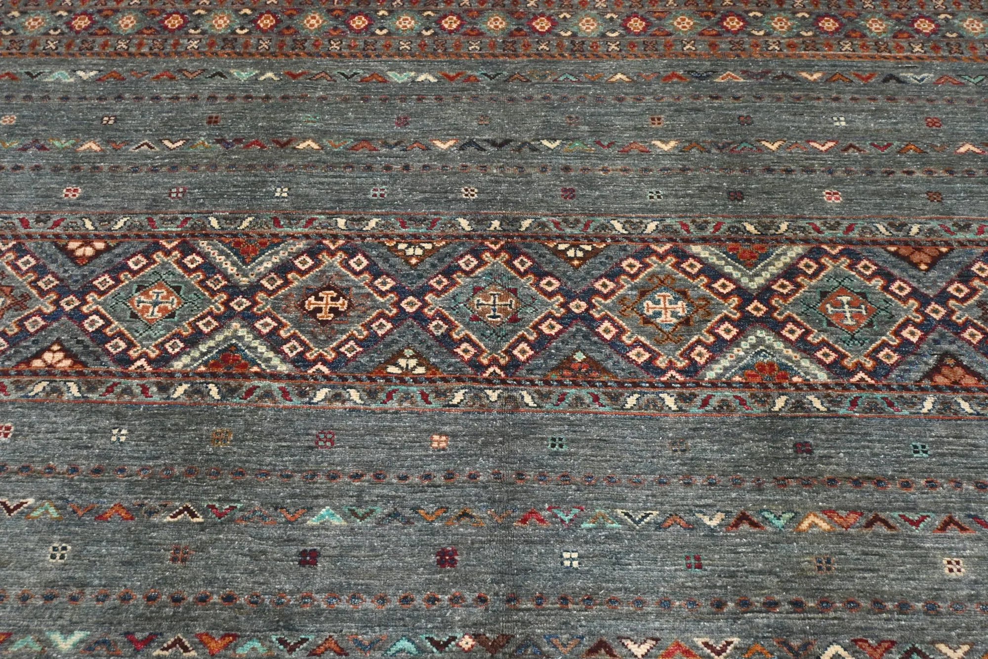 Khorjin rugs from Afghanistan are a type of traditional te x tile often used as bags or saddlebags by nomadic tribes in the region. These rugs are known for their practical uses and beautiful patterns. Originally created to be used as pack bags by nomadic people, Khorjin rugs are often designed with functionality in mind. The patterns on Khorjin rugs are often geometric and colorful, with symbolic motifs representing the tribe's culture and traditions. Common motifs include diamonds, rhombuses, and other geometric shapes, often in a rich color palette. Khorjin rugs are typically woven from wool, which makes them durable and tough enough for nomadic life. The colors in Khorjin rugs are usually natural, produced from plant dyes, giving them a warm and earthy color palette. Typical colors include red, blue, brown, and beige, but there may also be touches of green and yellow. Khorjin rugs are not just practical, but they are also artworks that tell stories about the tribe's life and culture. Each rug is unique and reflects the weaver's skill and creativity. High-quality materials and craftsmanship make Khorjin rugs long-lasting and valuable investments for customers.