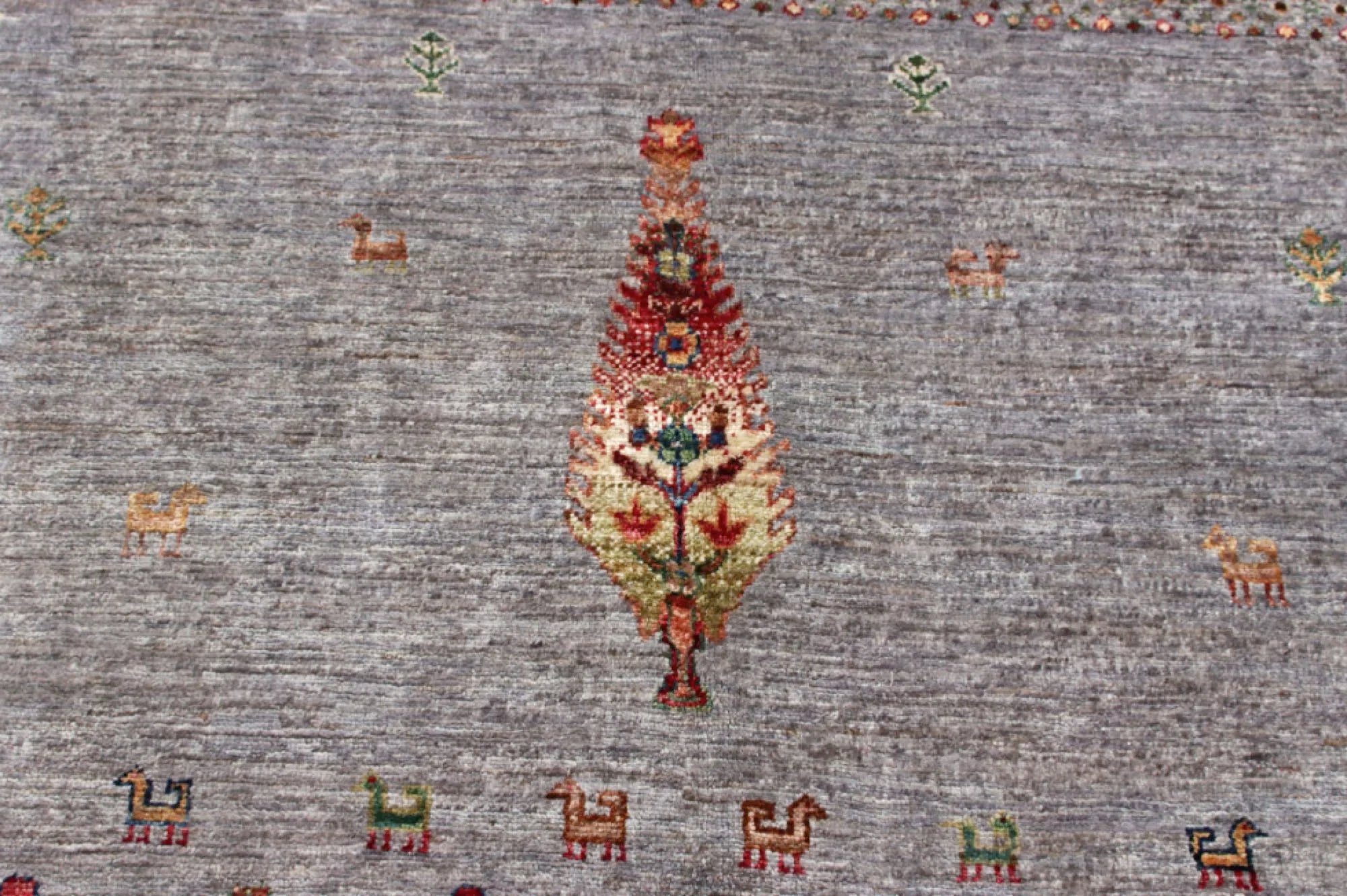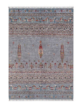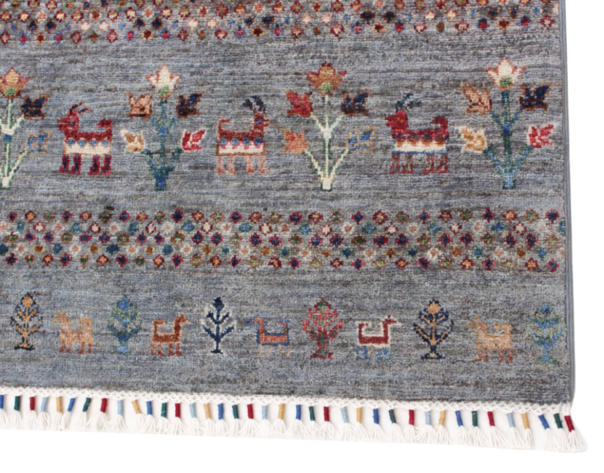 Khorjin rugs from Afghanistan are a type of traditional te x tile often used as bags or saddlebags by nomadic tribes in the region. These rugs are known for their practical uses and beautiful patterns. Originally created to be used as pack bags by nomadic people, Khorjin rugs are often designed with functionality in mind. The patterns on Khorjin rugs are often geometric and colorful, with symbolic motifs representing the tribe's culture and traditions. Common motifs include diamonds, rhombuses, and other geometric shapes, often in a rich color palette. Khorjin rugs are typically woven from wool, which makes them durable and tough enough for nomadic life. The colors in Khorjin rugs are usually natural, produced from plant dyes, giving them a warm and earthy color palette. Typical colors include red, blue, brown, and beige, but there may also be touches of green and yellow. Khorjin rugs are not just practical, but they are also artworks that tell stories about the tribe's life and culture. Each rug is unique and reflects the weaver's skill and creativity. High-quality materials and craftsmanship make Khorjin rugs long-lasting and valuable investments for customers.