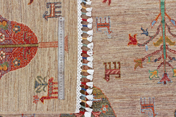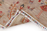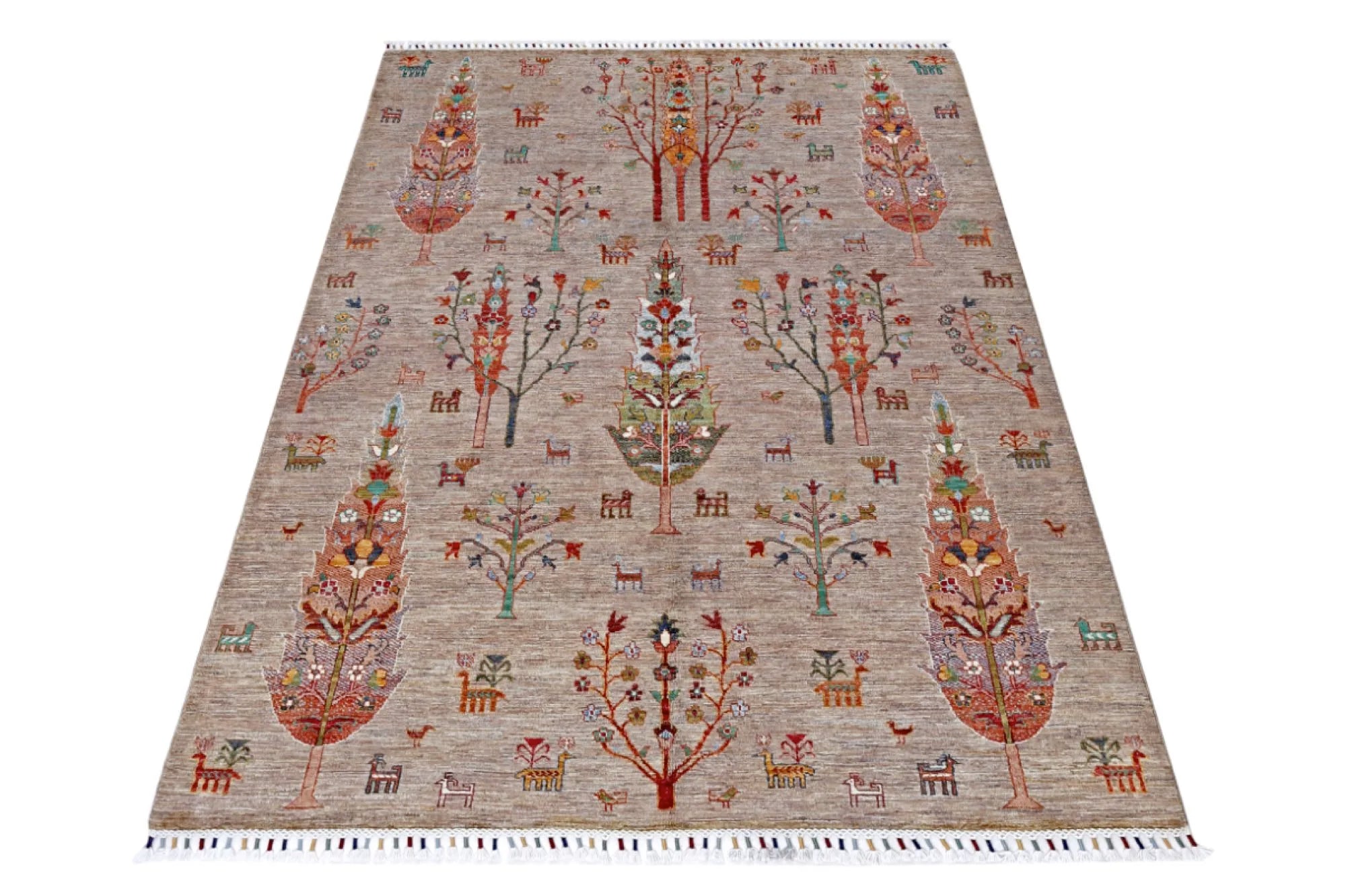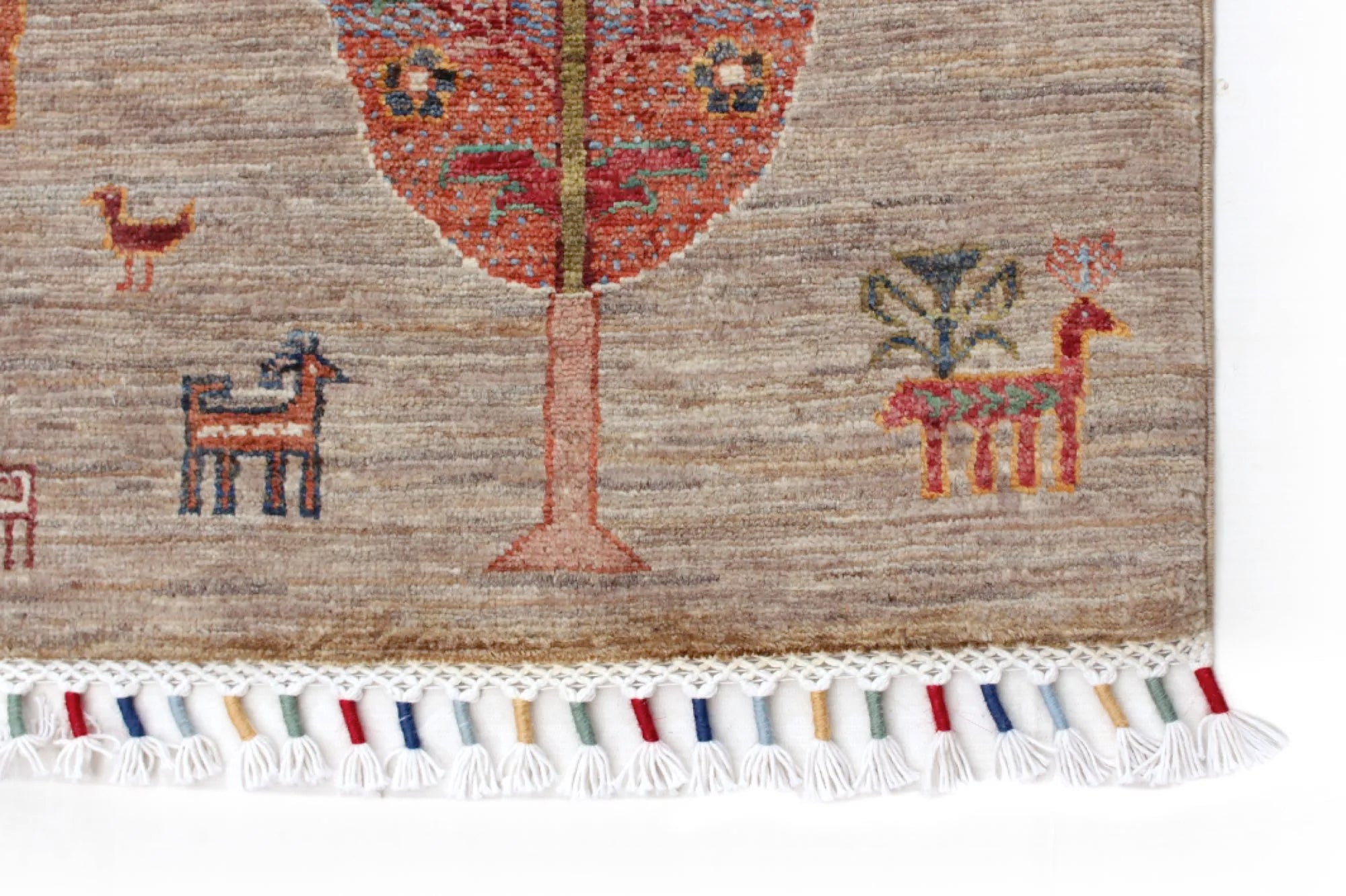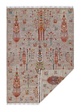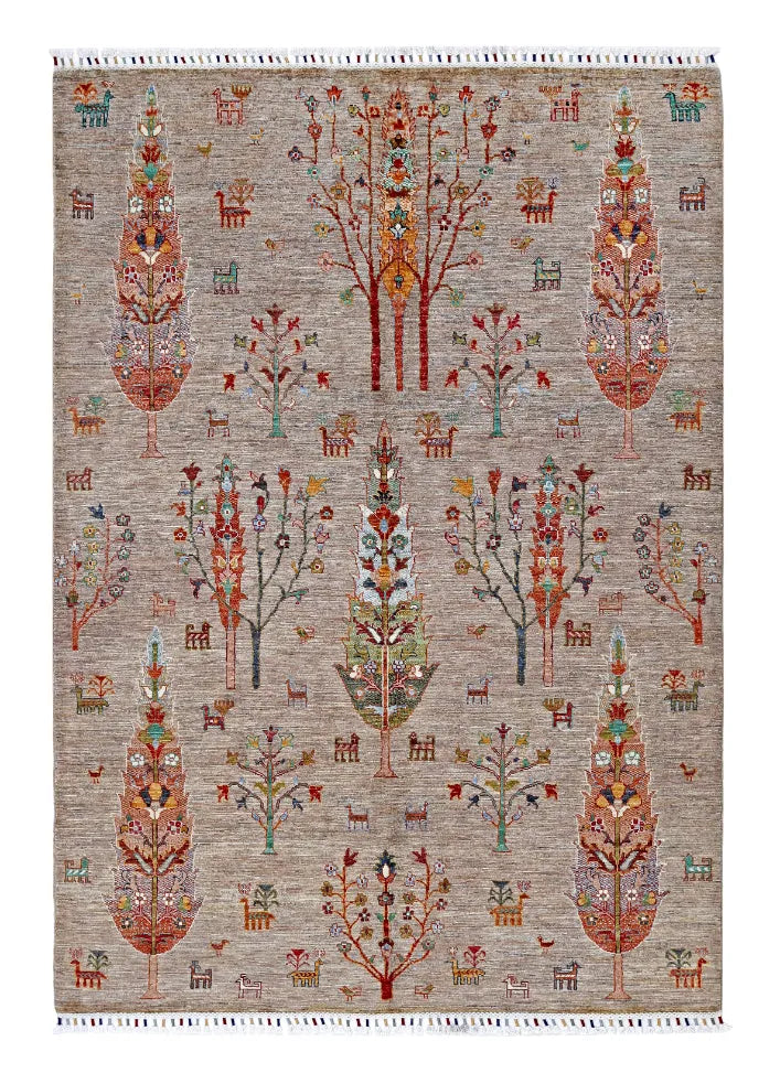 Gran is an exclusive, hand-knotted Khorjin-style rug from Afghanistan, featuring a design inspired by the organic patterns of pine wood grains. The bright, cheerful colors combined with the artistic composition make this rug ideal for anyone looking for a vibrant, modern and expressive interior piece. Made from 100% hand-spun wool and dyed entirely with natural vegetable dyes, this rug offers a warm, authentic look with a beautiful natural sheen. Every knot is tied by hand by skilled Afghan artisans, ensuring a dense, durable and long-lasting rug of superior quality. The Gran rug fits perfectly in modern and classic interiors alike and serves beautifully as a statement piece in living rooms, bedrooms or workspaces. A stunning blend of traditional craftsmanship and contemporary design — for those who want a rug that truly stands out.
