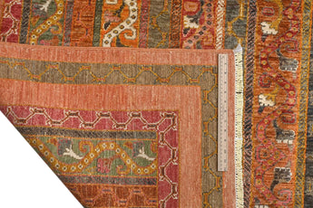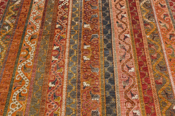 Shal rugs from Afghanistan are a type of traditional te x tile often used as bags or saddlebags by nomadic tribes in the region. These rugs are known for their practical uses and beautiful designs. Originally created for use as pack bags by nomadic people, Shal rugs are often designed with functionality in mind. The patterns on Shal rugs are often colorful, with symbolic motifs representing the tribe's culture and traditions. Typically knotted from wool, Shal rugs are durable and sturdy for nomadic life. The colors in Shal rugs are usually natural, made from plant dyes, giving them a warm and earthy color palette. Typical colors include red, blue, brown, and beige, but there may also be hints of green and yellow. Shal rugs are not only practical but also works of art that tell stories about the tribe's life and culture. Each rug is unique and reflects the weaver's skill and creativity. High-quality materials and craftsmanship make Shal rugs long-lasting and valuable investments for customers.