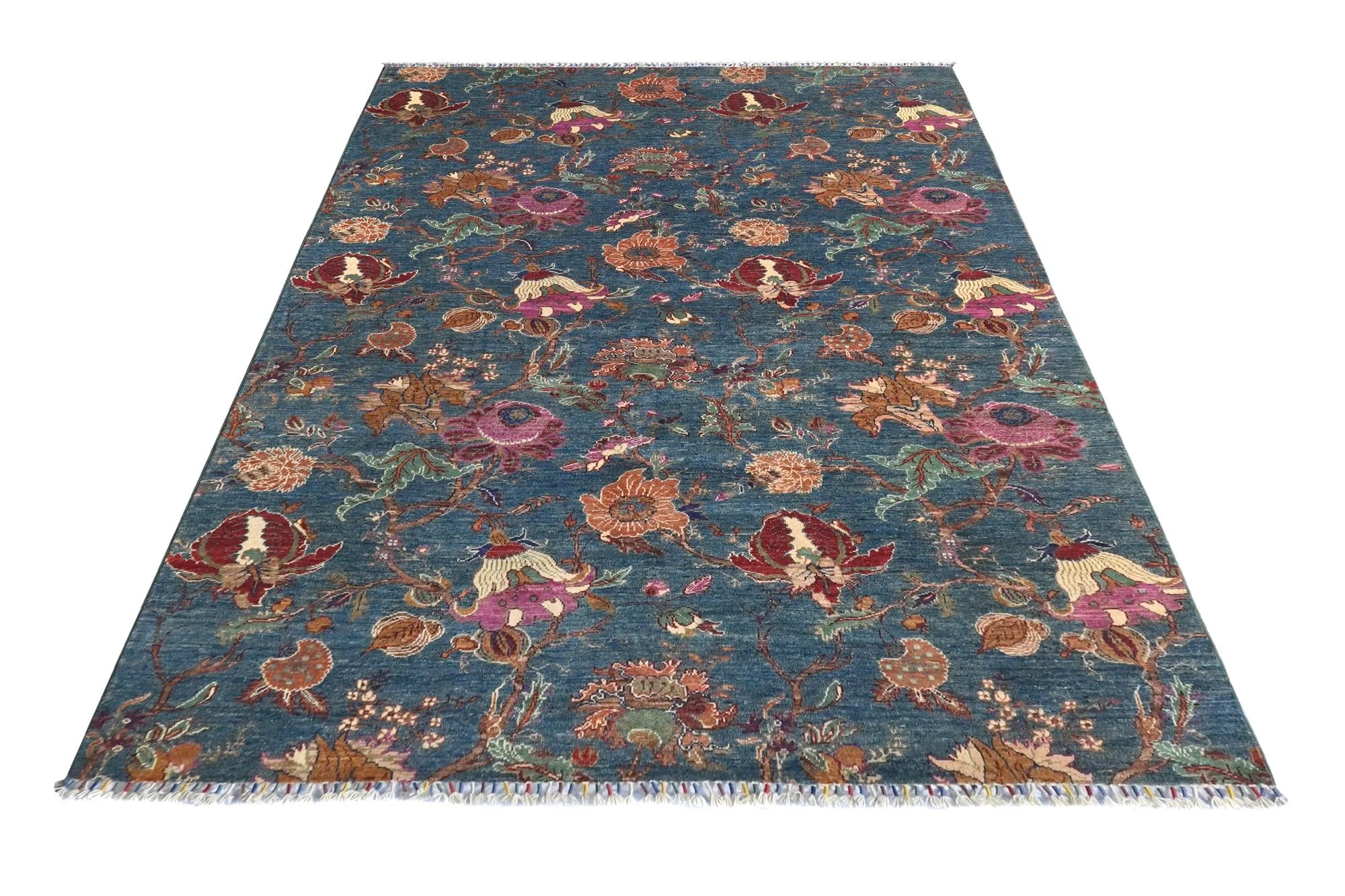 Flora is an exceptional hand-knotted Afghan rug, crafted from 100% hand-spun wool and dyed exclusively with natural vegetable dyes. Featuring joyful, vibrant colors and richly detailed floral patterns, this rug celebrates nature’s shapes and artistic beauty. Its design blends traditional Afghan craftsmanship with a fresh, modern expression, making it the perfect choice for anyone seeking a colorful designer rug that stands out. With its dense knotting, natural materials, and long-lasting durability, Flora offers a soft yet resilient texture that will enhance your home for years. Ideal for living rooms, bedrooms, and any space where you want warmth, character, and inspiration. If you are looking for a hand-knotted floral rug, a vegetable-dyed oriental rug, or a unique Afghan design rug, Flora is an outstanding option.