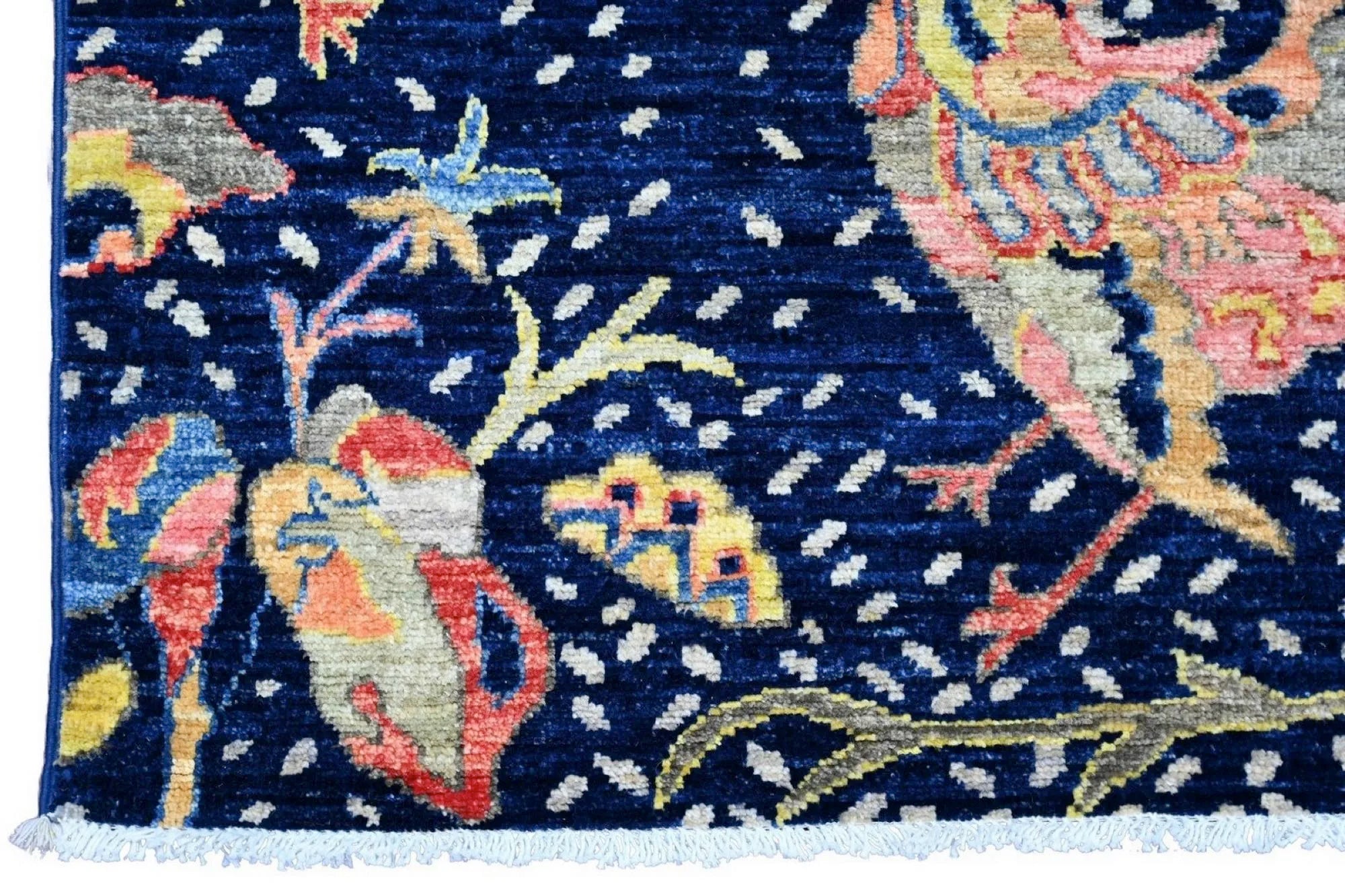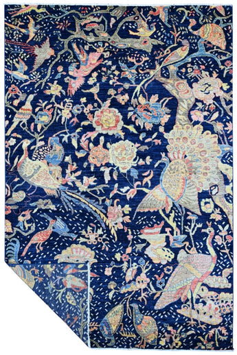 Nirvana is an extraordinary hand-knotted rug that blends traditional oriental weaving heritage with the poetic beauty of nature. Inspired by the classical Khorjin style, this masterpiece introduces a fresh interpretation where birds, foliage, and natural motifs create a harmonious, lively pattern across the entire rug. Every detail is crafted with artistic precision, giving the piece depth, rhythm, and movement. Woven from 100% hand-spun wool and dyed exclusively with natural vegetable dyes, Nirvana offers a rich, vibrant color palette that feels both joyful and timeless. The natural sheen of the wool enhances the colors beautifully under different lighting conditions, turning the rug into a true statement piece. This rug is not just décor -it is a textile artwork that brings warmth, character, and a sense of balance into any home. For those seeking a unique, soulful, and expressive rug with deep craftsmanship and artistic flair, Nirvana is the perfect choice.