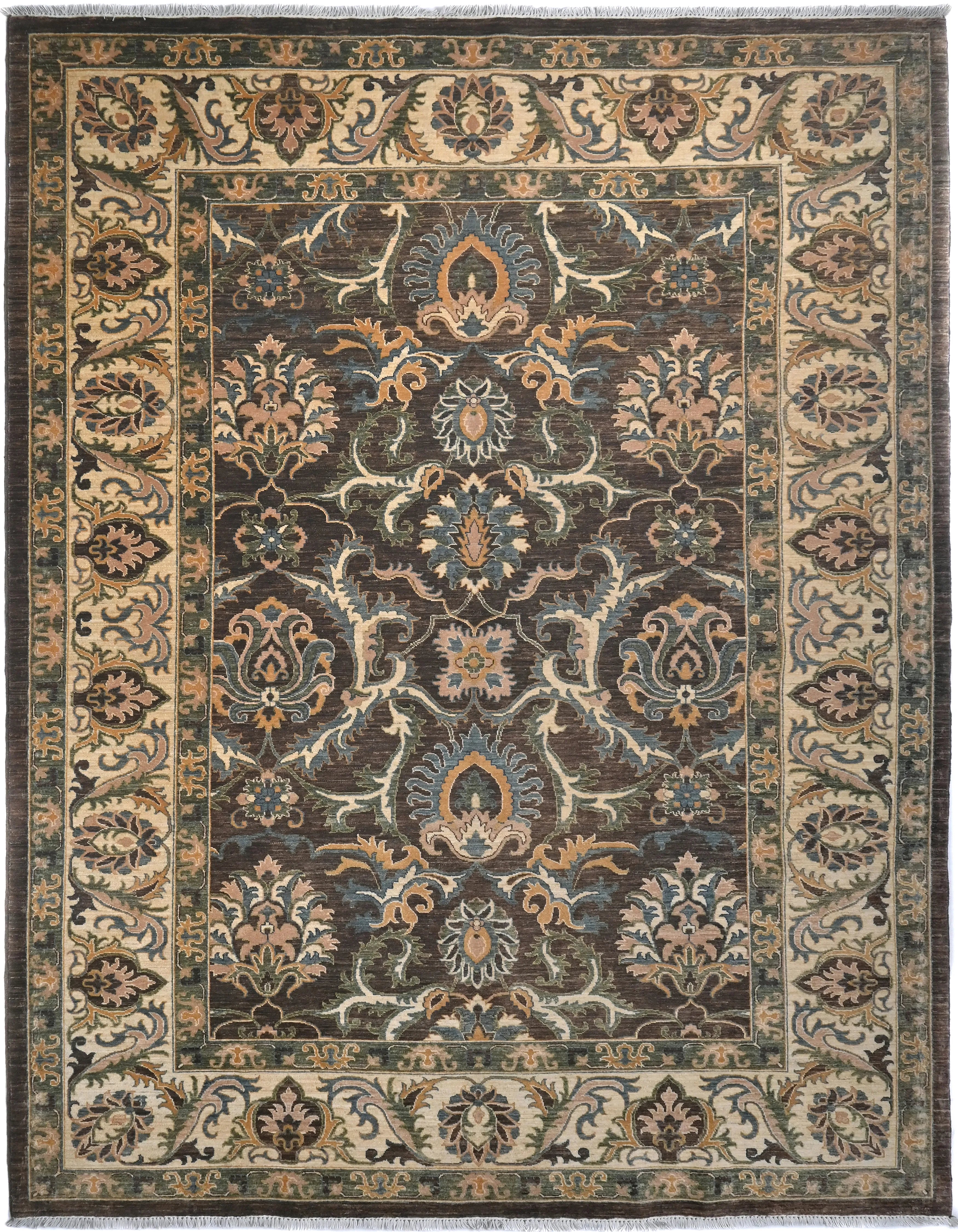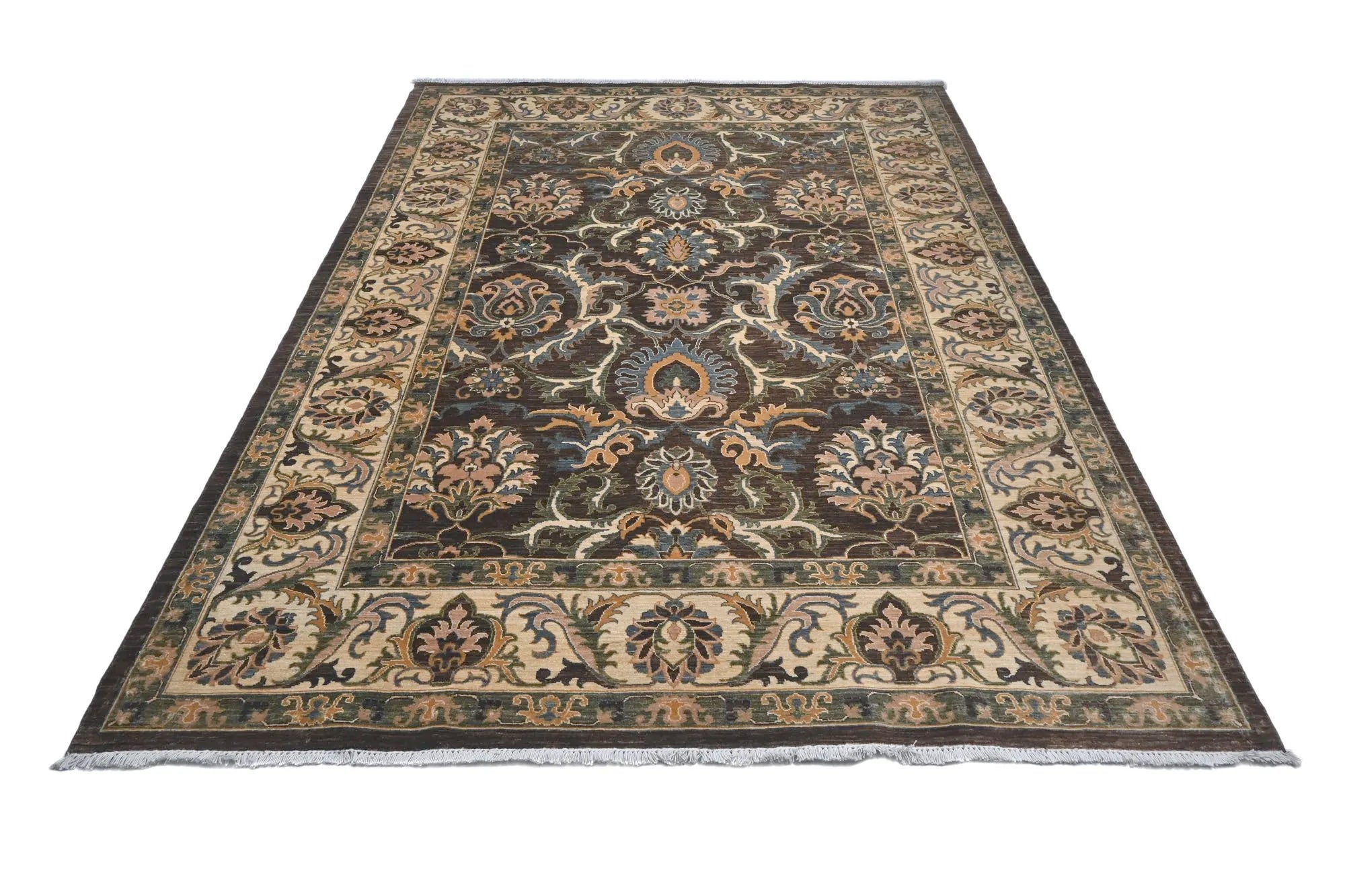 Ziegler rugs are characterized by their elegant and often quite subtle patterns that combine traditional Persian motifs with a modern aesthetic. They often include floral and leaf motifs as well as geometric shapes. One of the most distinctive features of Ziegler rugs is their muted color palette. They use natural dyes to create soft, earthy colors such as beige, cream, light blue, gray, and muted red and green shades. The rugs have a vintage-inspired look with a modern twist, making them suitable for both traditional and modern interior styles. Ziegler rugs are usually made of high-quality wool, which gives them a soft, lu x urious feel and e x cellent durability. Cotton is often used for the warp, providing stability and strength. The rugs are hand-knotted with a high knot density, ensuring that they are both robust and detailed. This technique requires great skill and patience, resulting in rugs of e x ceptional quality. Thanks to the tight knotting and high-quality wool, Ziegler rugs are very durable and can withstand a lot of wear and tear, making them ideal for high-traffic areas like living rooms and hallways. Their muted colors and elegant patterns make them a perfect decorative detail that can enhance the appearance of any room without being too obtrusive. Ziegler rugs are very versatile and can be used in various environments, from classic to modern. They are also popular as art objects due to their aesthetic value. These rugs are known for their high quality and durability, making them a long-term investment for your home. Their elegant and sophisticated design ensures that they never go out of style and can be used in many different interior styles. The use of natural dyes and high-quality wool makes them both environmentally friendly and healthy options for the home.
