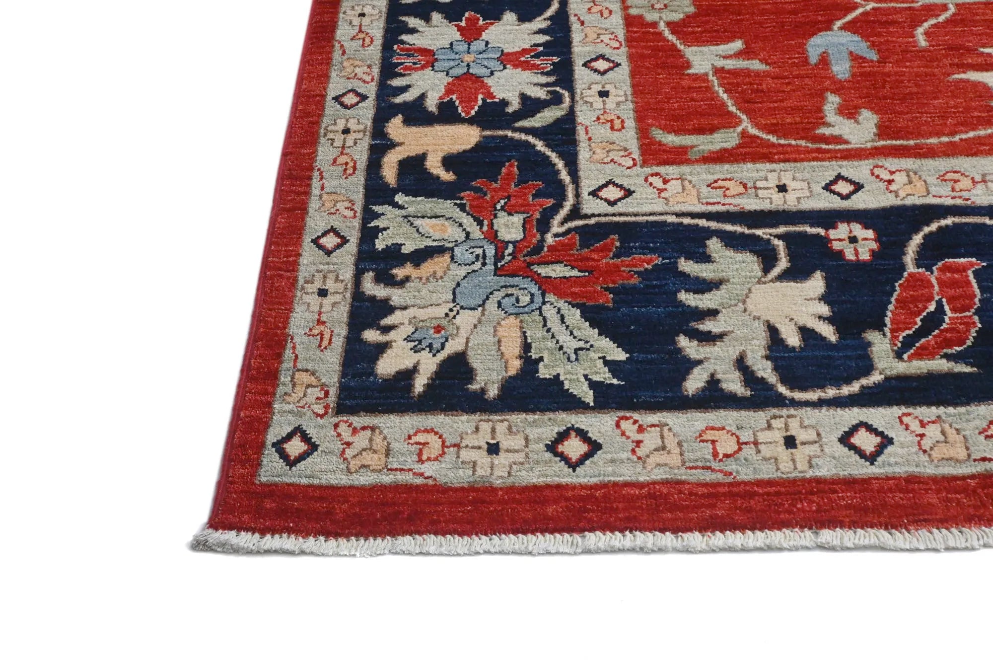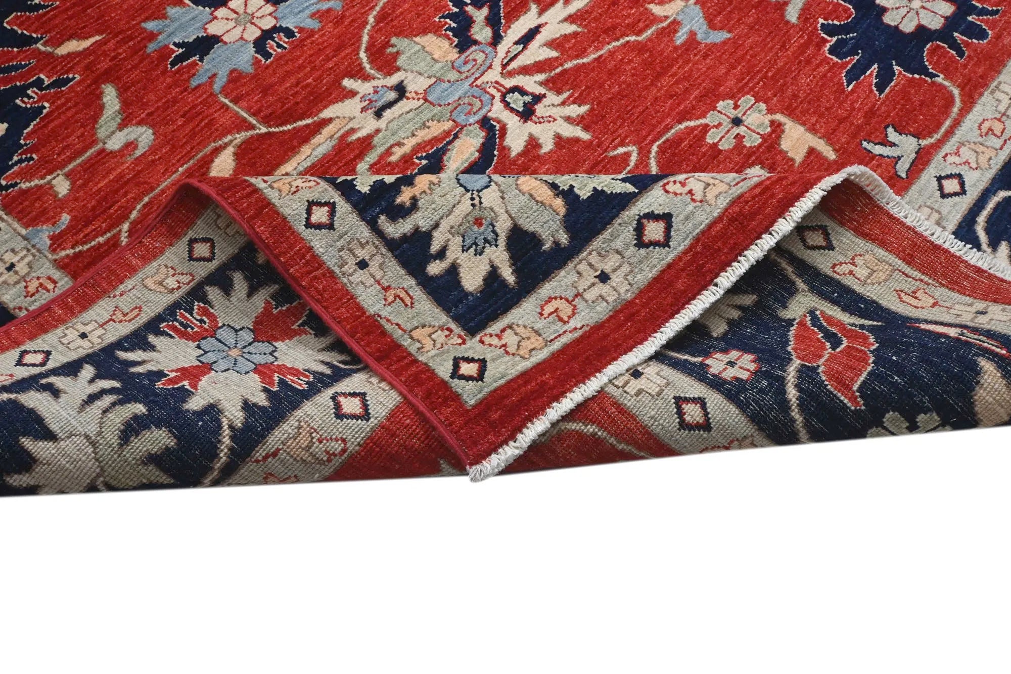 Khorjin Contrast is an exclusive, densely hand-knotted rug that blends traditional craftsmanship with contemporary design. Inspired by classical Mamluk rugs, this piece features a striking mix of deep blue, red, turquoise, green, and beige tones. Its bold and artistic color composition makes it the perfect choice for anyone looking for a unique designer rug that truly stands out. With its high knot density, natural sheen, and exquisite detailing, this rug is a genuine quality masterpiece. Every knot is tied by hand, ensuring durability and long-lasting beauty. This rug fits seamlessly into both modern and traditional interiors and works perfectly as a statement piece in living rooms, dining areas, or professional spaces. If you are searching for a real oriental rug, a distinctive design rug, or a premium hand-knotted Khorjin rug, Khorjin Contrast is an exceptional option. A rug that transforms the atmosphere of any room — visually and stylistically.