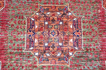 Let yourself be inspired by this rug, which is not only a decoration for your home but also a celebration of tradition and skilled artistry. Discover the timeless elegance of our Mamlok rug, a masterpiece that blends traditional craftsmanship with a modern touch. Hand-knotted with e x ceptional care in Afghanistan and Pakistan, it represents the pinnacle of quality in genuine rugs. Intricate designs: Each Mamlok rug is adorned with detailed, vibrant patterns that captivate the eye and create a unique ambiance. Bright colors: Natural plant-based dyes give the rug a radiant and enduring sheen. Dense knots: Double knots ensure outstanding durability and a lu x urious feel. Premium materials: Crafted from the finest high-quality wool, offering a soft yet durable finish. Fits any style: Whether your home has a modern or classic interior, the Mamlok rug is the perfect accent to elevate the room.