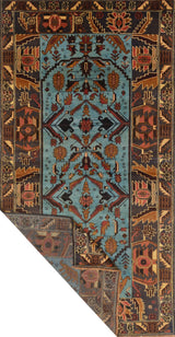 Baluchmattor kommer från områden som bebos av baluchfolket, främst i östra Iran, västra Afghanistan och sydvästra Pakistan. Baluch är kända för sin nomadiska livsstil, och deras mattor speglar denna kulturella och geografiska mångfald. Baluchmattor har ofta intrikata geometriska mönster och ibland stiliserade motiv som representerar naturen, som blommor och djur. Vanliga mönster inkluderar guls och oktagoner. Typiska färger inkluderar djupröd, blå och brun, ofta kombinerad med vita och svarta accenter för att skapa kontrast. Dessa mattor är vanligtvis handvävda med ull på bomullsbotten, vilket ger dem både hållbarhet och mjukhet. Ull är det vanligaste materialet som används, men ibland används även gethår eller siden. Traditionellt vävs dessa mattor för hand på horisontella eller vertikala vävstolar, en process som kan ta flera månader beroende på mattans storlek och komplexitet. Baluchmattor användes främst som golvbeläggning i nomadtält, men idag används de även som dekorativa väggbonader och ibland som bönemattor. Många av mönstren och färgerna har symboliska betydelser, som skyddande amuletter eller symboler för välstånd och fertilitet. Baluchmattor är inte bara praktiska föremål utan också konstverk som berättar en rik historia om människorna och kulturerna som skapade dem.