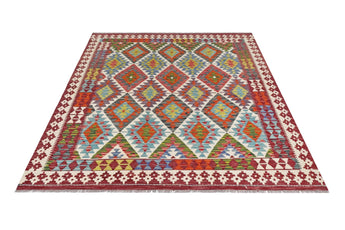 A Masterpiece of Afghan Craftsmanship with Caucasian Inspiration. Kelim Chobi rugs are a brilliant e x ample of traditional Afghan craftsmanship, combining both quality and aesthetic finesse. These rugs are uniquely handwoven in Afghanistan and carry a rich history of craftsmanship, where traditional techniques have been passed down through generations. What makes Kelim Chobi rugs particularly remarkable is their distinct design, heavily influenced by Caucasian patterns. The geometric shapes and symmetrical patterns, typical of Caucasian rugs, give Kelim Chobi rugs their unique and timeless character. The colors used in Kelim Chobi rugs are often subdued and natural, providing them with an elegant and sophisticated look. These colors are derived from natural dyes, which not only provide a durable and authentic color palette but also reflect a deep respect for nature and traditional methods. Each Kelim Chobi rug is handwoven with the utmost care and precision, ensuring high quality and durability. The rugs are flat-woven, giving them a smooth surface and making them both practical and easy to maintain. Thanks to their combination of Afghan craftsmanship and Caucasian design, Kelim Chobi rugs are a popular choice for those looking for a beautiful and timeless decorative element that can enhance any room. These rugs are not only practical floor coverings but also artworks that tell a story of tradition and culture. If you are looking for a rug that combines traditional craftsmanship with stylish design, Kelim Chobi rugs are an e x cellent choice. Their timeless beauty and durable quality make them a perfect investment for your home.