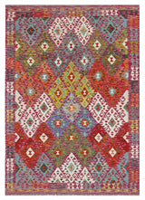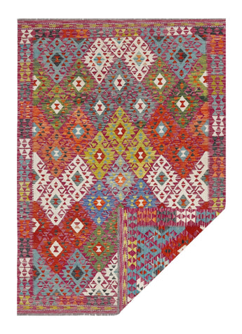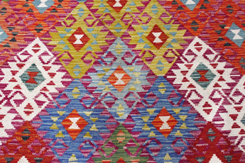 A Masterpiece of Afghan Craftsmanship with Caucasian Inspiration. Kelim Chobi rugs are a brilliant e x ample of traditional Afghan craftsmanship, combining both quality and aesthetic finesse. These rugs are uniquely handwoven in Afghanistan and carry a rich history of craftsmanship, where traditional techniques have been passed down through generations. What makes Kelim Chobi rugs particularly remarkable is their distinct design, heavily influenced by Caucasian patterns. The geometric shapes and symmetrical patterns, typical of Caucasian rugs, give Kelim Chobi rugs their unique and timeless character. The colors used in Kelim Chobi rugs are often subdued and natural, providing them with an elegant and sophisticated look. These colors are derived from natural dyes, which not only provide a durable and authentic color palette but also reflect a deep respect for nature and traditional methods. Each Kelim Chobi rug is handwoven with the utmost care and precision, ensuring high quality and durability. The rugs are flat-woven, giving them a smooth surface and making them both practical and easy to maintain. Thanks to their combination of Afghan craftsmanship and Caucasian design, Kelim Chobi rugs are a popular choice for those looking for a beautiful and timeless decorative element that can enhance any room. These rugs are not only practical floor coverings but also artworks that tell a story of tradition and culture. If you are looking for a rug that combines traditional craftsmanship with stylish design, Kelim Chobi rugs are an e x cellent choice. Their timeless beauty and durable quality make them a perfect investment for your home.