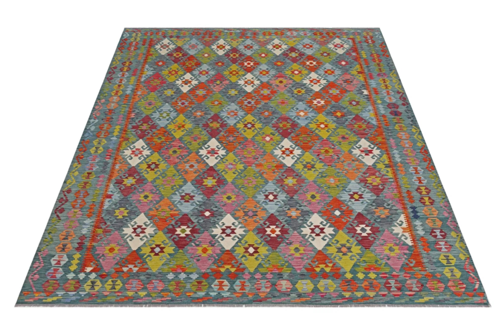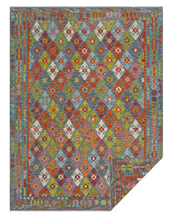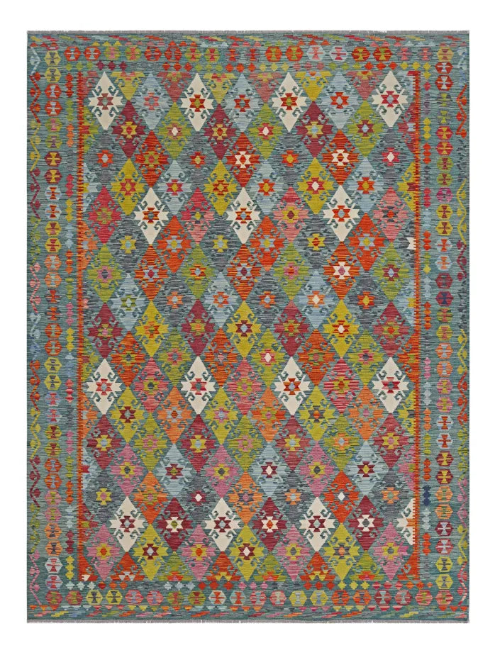 A Masterpiece of Afghan Craftsmanship with Caucasian Inspiration. Kelim Chobi rugs are a brilliant e x ample of traditional Afghan craftsmanship, combining both quality and aesthetic finesse. These rugs are uniquely handwoven in Afghanistan and carry a rich history of craftsmanship, where traditional techniques have been passed down through generations. What makes Kelim Chobi rugs particularly remarkable is their distinct design, heavily influenced by Caucasian patterns. The geometric shapes and symmetrical patterns, typical of Caucasian rugs, give Kelim Chobi rugs their unique and timeless character. The colors used in Kelim Chobi rugs are often subdued and natural, providing them with an elegant and sophisticated look. These colors are derived from natural dyes, which not only provide a durable and authentic color palette but also reflect a deep respect for nature and traditional methods. Each Kelim Chobi rug is handwoven with the utmost care and precision, ensuring high quality and durability. The rugs are flat-woven, giving them a smooth surface and making them both practical and easy to maintain. Thanks to their combination of Afghan craftsmanship and Caucasian design, Kelim Chobi rugs are a popular choice for those looking for a beautiful and timeless decorative element that can enhance any room. These rugs are not only practical floor coverings but also artworks that tell a story of tradition and culture. If you are looking for a rug that combines traditional craftsmanship with stylish design, Kelim Chobi rugs are an e x cellent choice. Their timeless beauty and durable quality make them a perfect investment for your home.