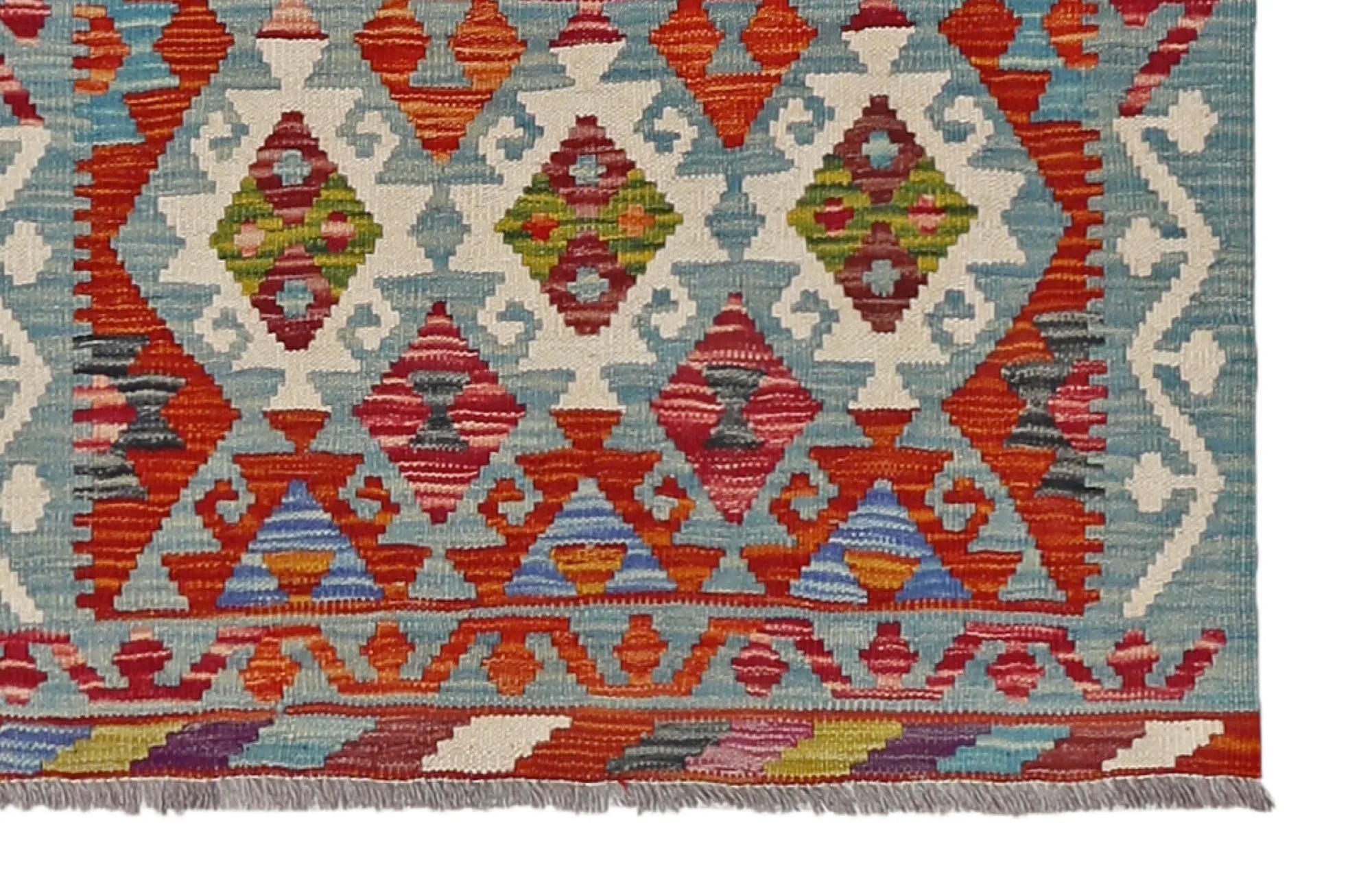 A Masterpiece of Afghan Craftsmanship with Caucasian Inspiration. Kelim Chobi rugs are a brilliant e x ample of traditional Afghan craftsmanship, combining both quality and aesthetic finesse. These rugs are uniquely handwoven in Afghanistan and carry a rich history of craftsmanship, where traditional techniques have been passed down through generations. What makes Kelim Chobi rugs particularly remarkable is their distinct design, heavily influenced by Caucasian patterns. The geometric shapes and symmetrical patterns, typical of Caucasian rugs, give Kelim Chobi rugs their unique and timeless character. The colors used in Kelim Chobi rugs are often subdued and natural, providing them with an elegant and sophisticated look. These colors are derived from natural dyes, which not only provide a durable and authentic color palette but also reflect a deep respect for nature and traditional methods. Each Kelim Chobi rug is handwoven with the utmost care and precision, ensuring high quality and durability. The rugs are flat-woven, giving them a smooth surface and making them both practical and easy to maintain. Thanks to their combination of Afghan craftsmanship and Caucasian design, Kelim Chobi rugs are a popular choice for those looking for a beautiful and timeless decorative element that can enhance any room. These rugs are not only practical floor coverings but also artworks that tell a story of tradition and culture. If you are looking for a rug that combines traditional craftsmanship with stylish design, Kelim Chobi rugs are an e x cellent choice. Their timeless beauty and durable quality make them a perfect investment for your home.